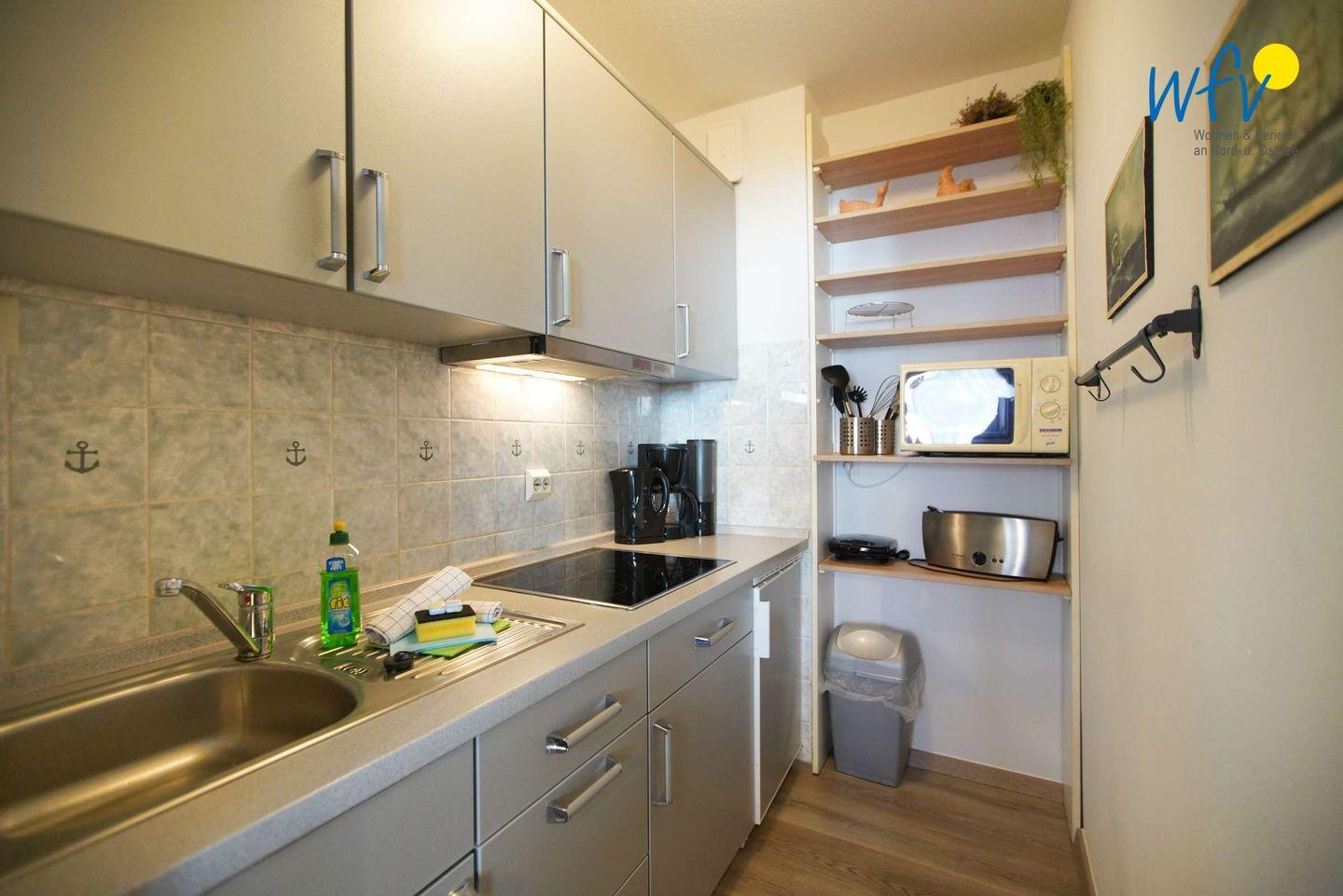 Damit Sie sich in Ihrem Borkum-Urlaub bequem selbst verpflegen können, ist die Küche u.a. mit einem Ceranherd, einem Kühlschrank mit Gefrierfach und einer Mikrowelle mit Grillfunktion sowie einer Kaffeemaschine, einem Wasserkocher und einem Toaster ausgestattet. Oder Sie genießen die vorzügliche Nordseeküche! Zahlreiche Restaurants servieren Ihnen köstliche regionale Spezialitäten. Gerne auch für Ihre Kleinen als Kinderteller!