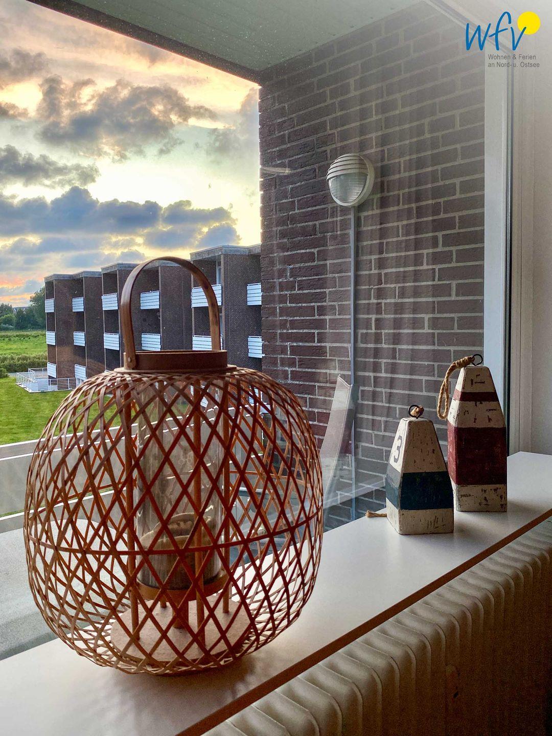 Herrlich relaxen können Sie vor allem auf dem sonnigen Südbalkon der Borkumer Ferienwohnung! Von hier aus haben Sie einen malerischen Blick auf die umliegende grüne Weidenlandschaft!