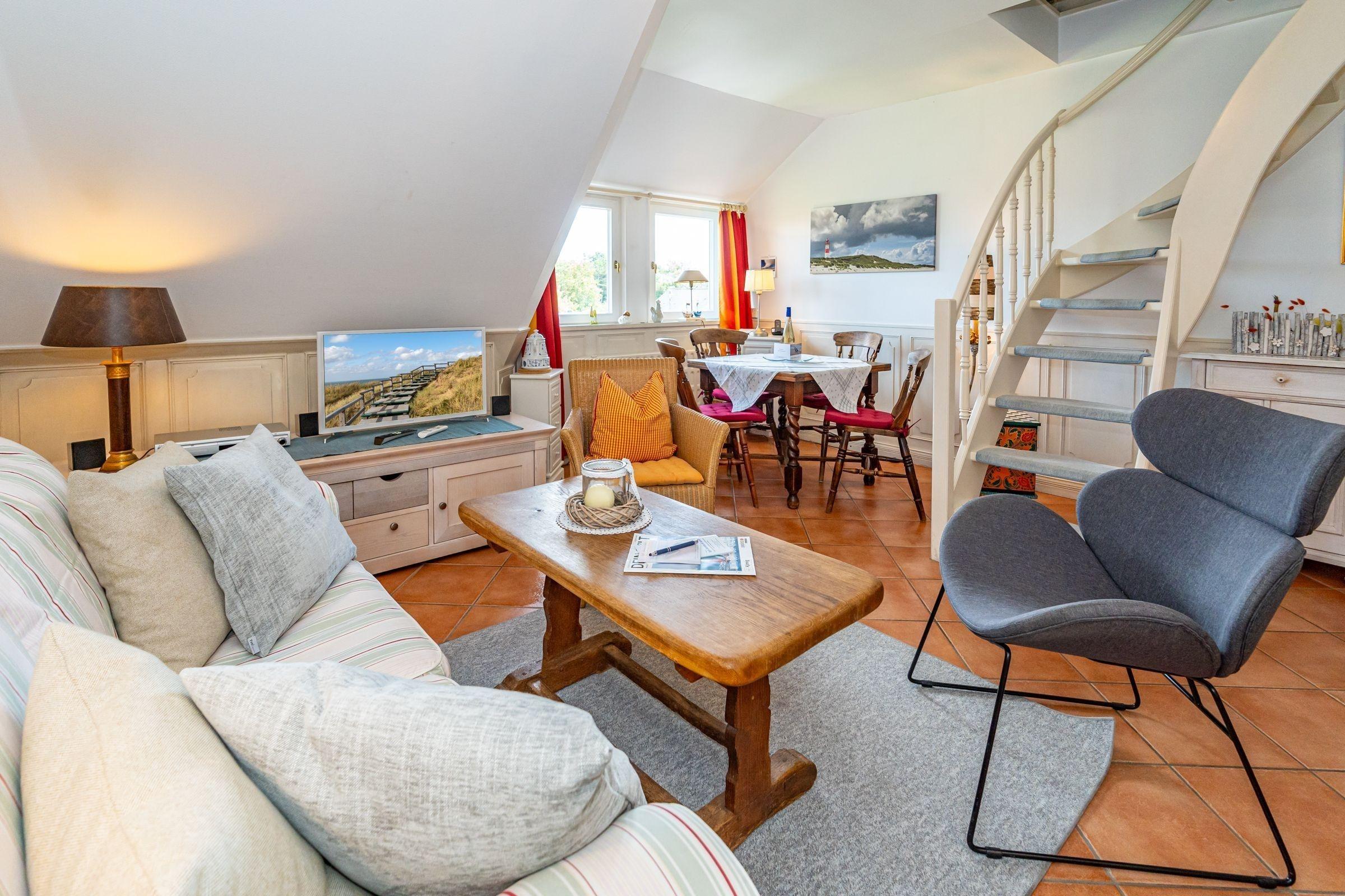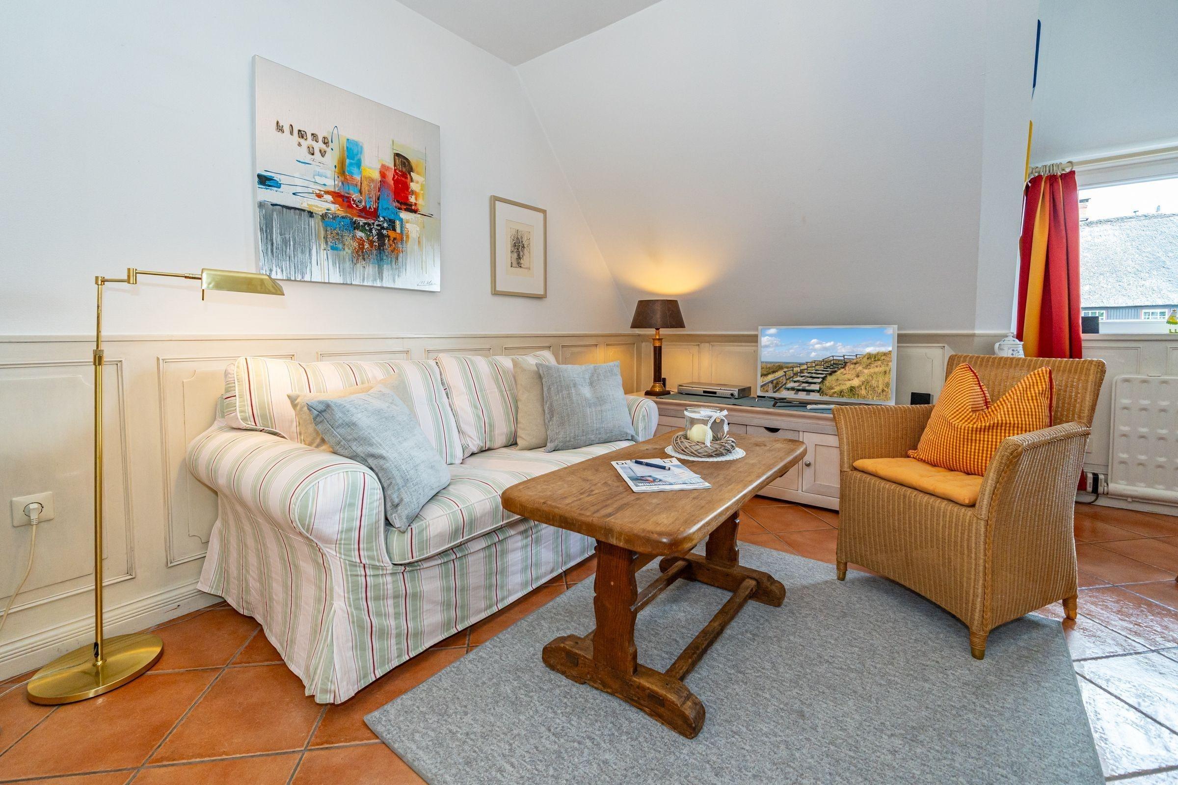 In der Friesenhaus-Anlage Weisses Kliff in Braderup bieten wir Ihnen unser Appt. Wattblick mit viel Charme und Liebe zum Detail und gemütlicher Einrichtung! In diesem Appt. finden Sie Ruhe, Entspannung und Erholung.