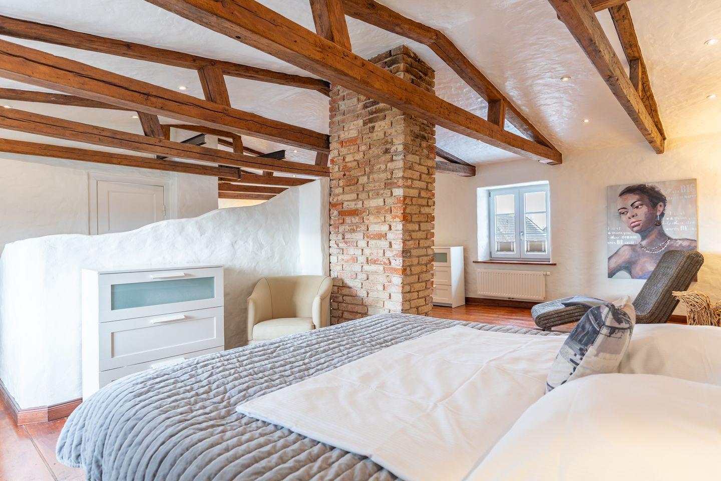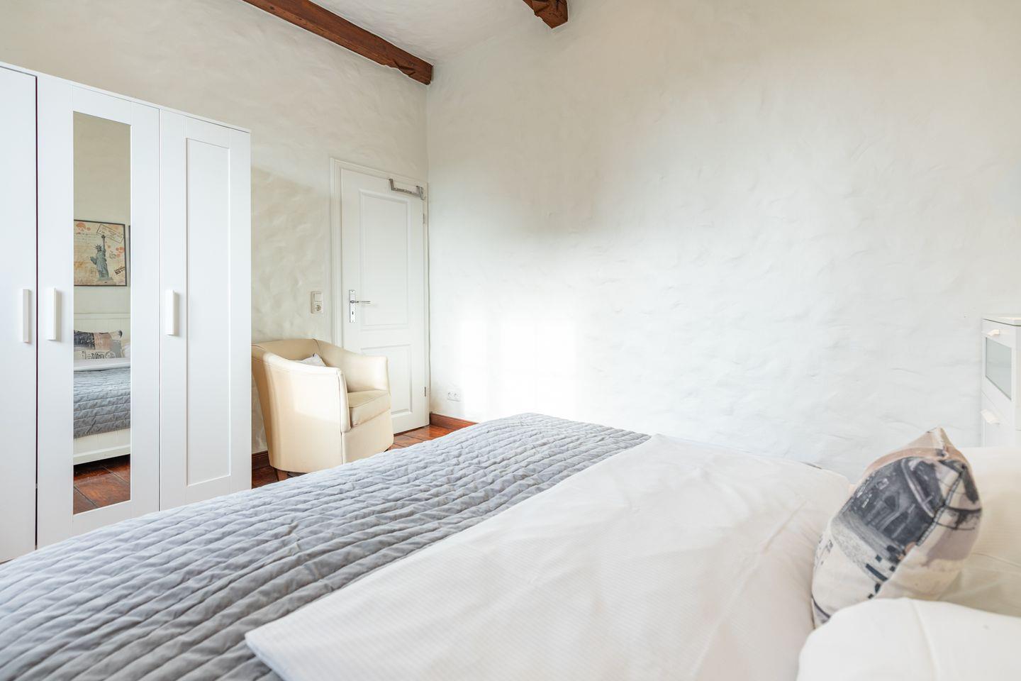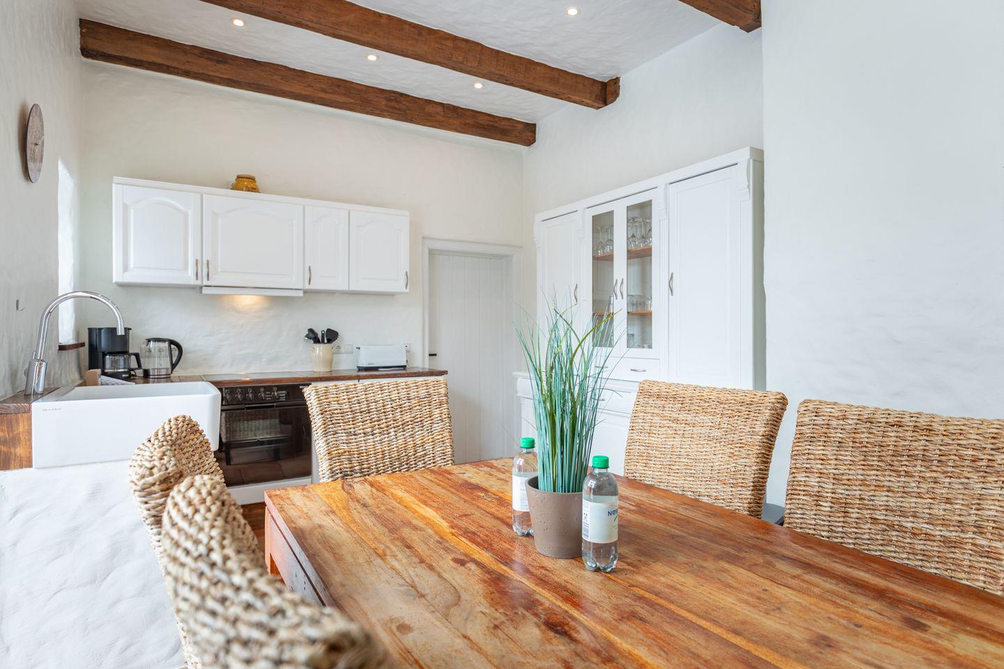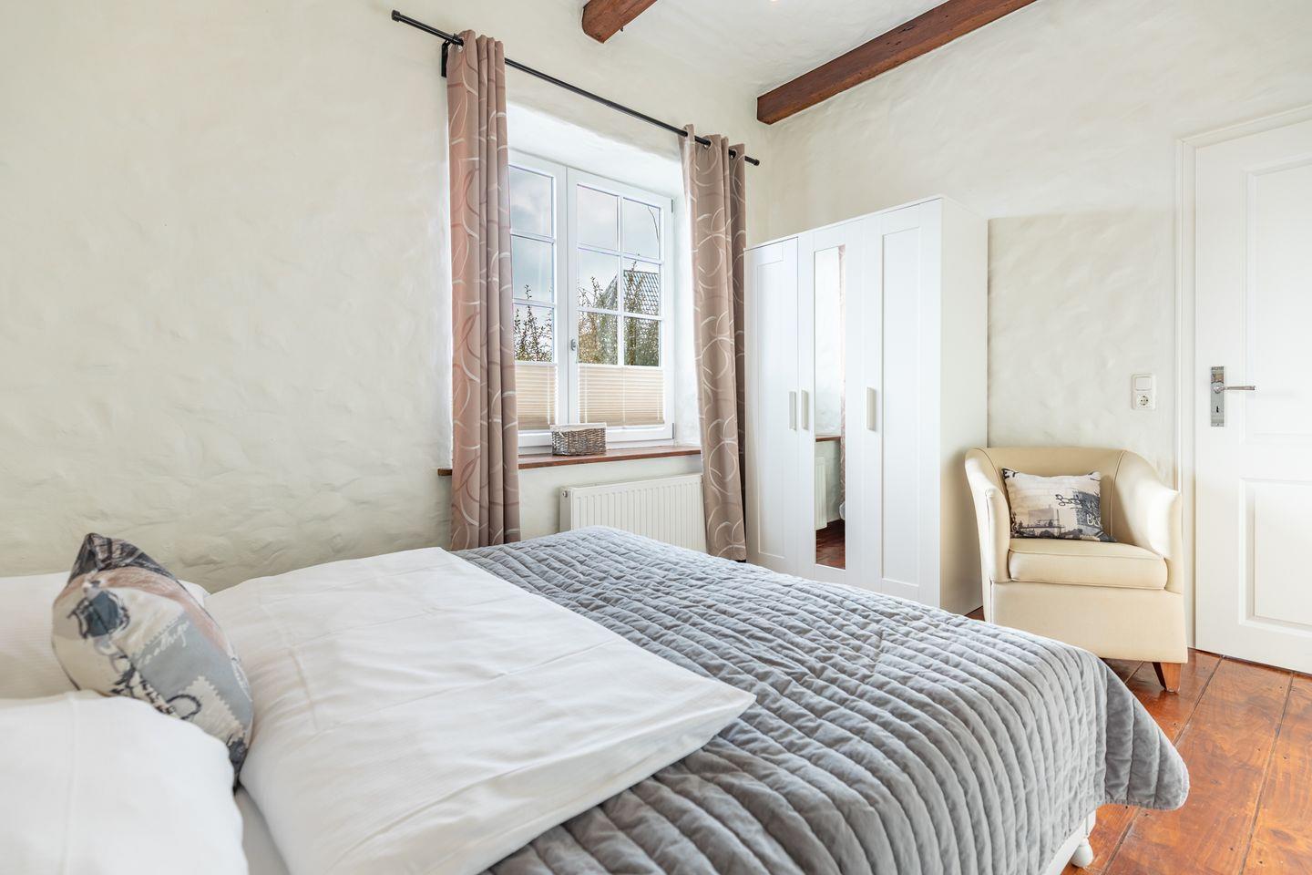 Die stilvoll eingerichtete Ferienwohnung ist 120 qm groß und bietet ein geräumiges Wohnzimmer mit Flachbild-TV (SAT). Die Küche mit dem großen Esstisch ist mit einem Herd (Ceranfeld), Backofen, Geschirrspülmaschine und Kühlschrank ausgestattet. Das Apartment verfügt im Erdgeschoss über ein Schlafzimmer mit einem Doppelbett (180 × 200) und ein Duschbad. Das großzügige, offene Obergeschoss bietet Ihnen einen gemütlichen Rückzugsort mit Sofaecke und TV sowie einen kleinen Balkon. Auf einem Boxspringbett (180 x 200) können Sie es sich so richtig bequem machen. Das moderne Wannenbad sorgt für Ihr Wohlbehagen nach einem langen Tagesausflug. Zur Wohnung gehört ein schöner Garten mit Terrasse, Gartenmöbeln und einem Grill.