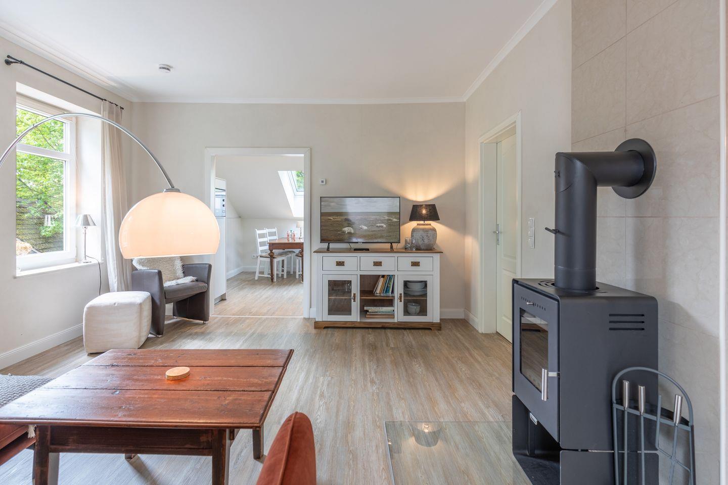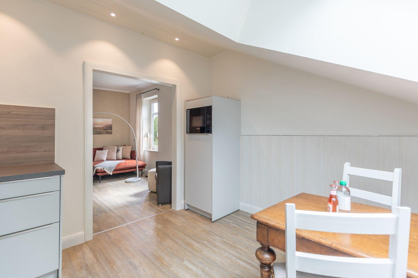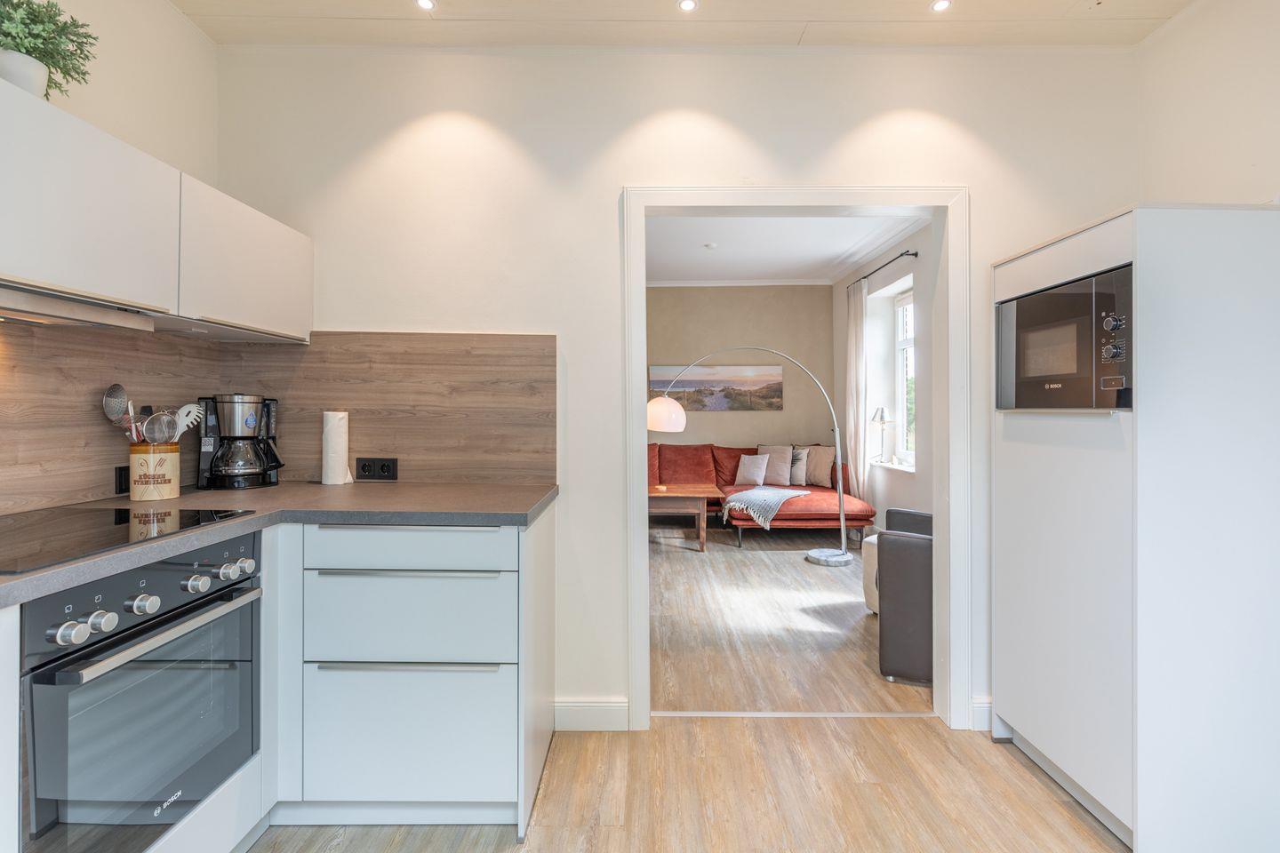 Die stilvoll und modern eingerichtete Ferienwohnung ist 54 qm groß und bietet ein geräumiges Wohnzimmer mit Flachbild-TV (SAT). Die Küche mit dem Esstisch ist mit einem Herd (Ceranfeld), Backofen, Mikrowelle, Geschirrspülmaschine und Kühlschrank ausgestattet. Das Apartment bietet Ihnen ein schönes Schlafzimmer (180 x 200) und ein Duschbad.