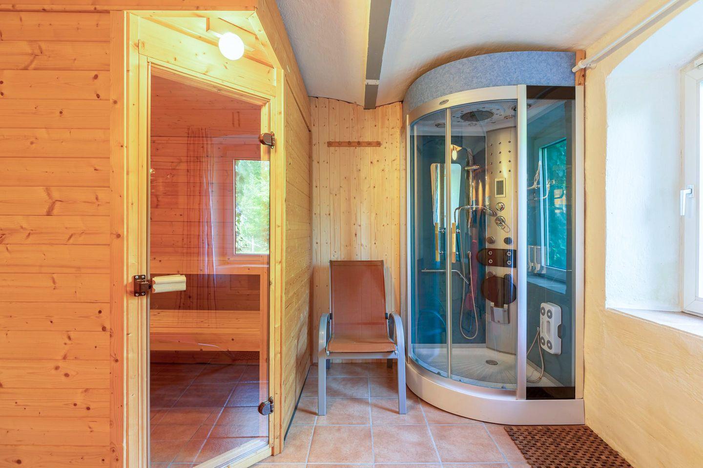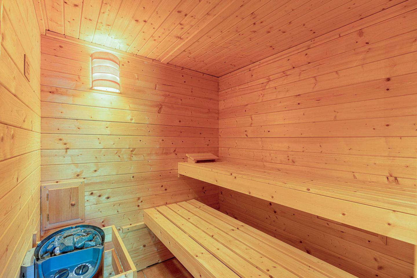 Im Keller können Sie nach einem ereignisreichen Tag in der Gemeinschaftssauna entspannen.