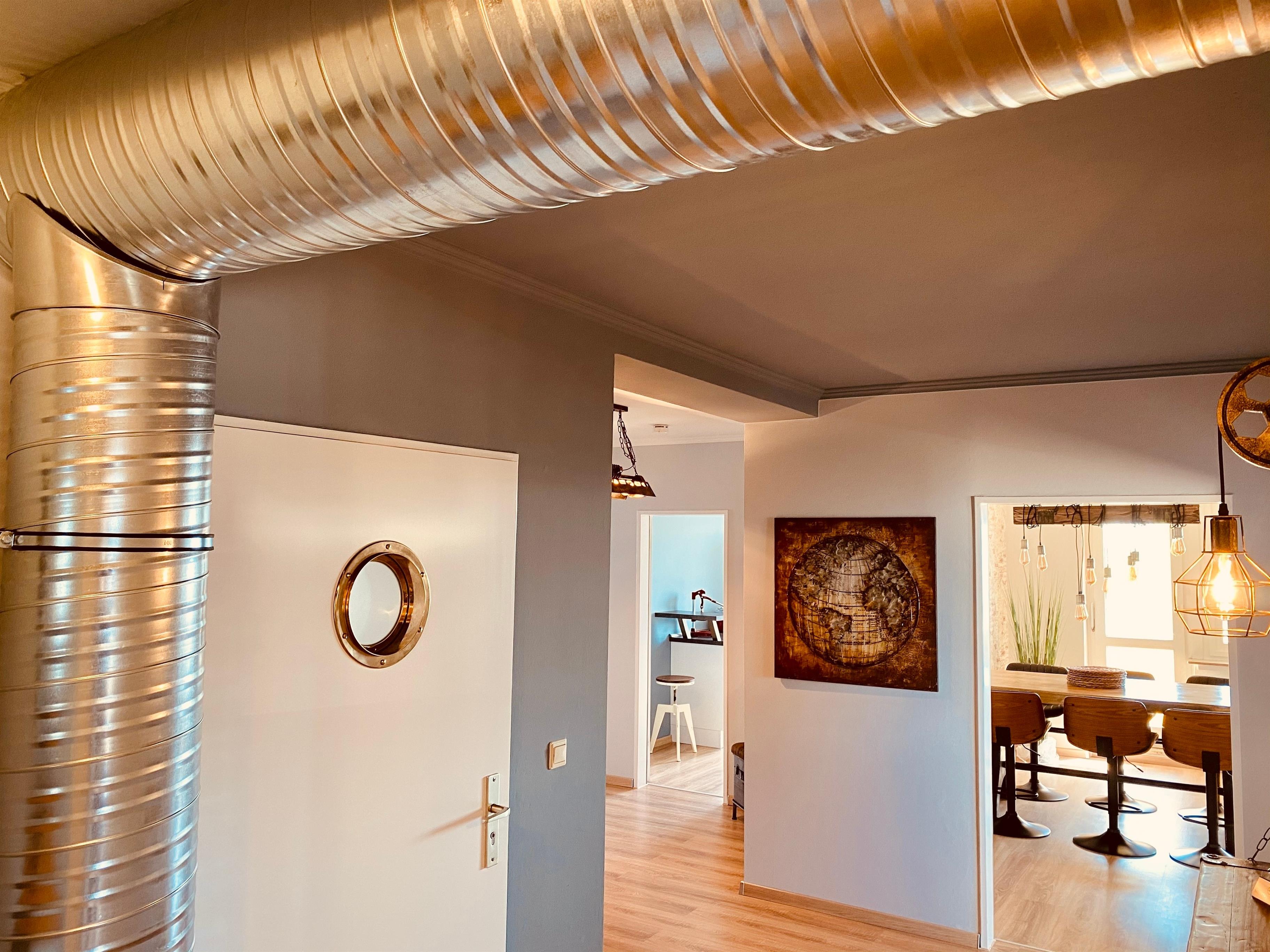 Entdecken Sie stilvolle maritime Geschichte in der River Docks Ferienwohnung mit Panoramablick in Bremerhaven.