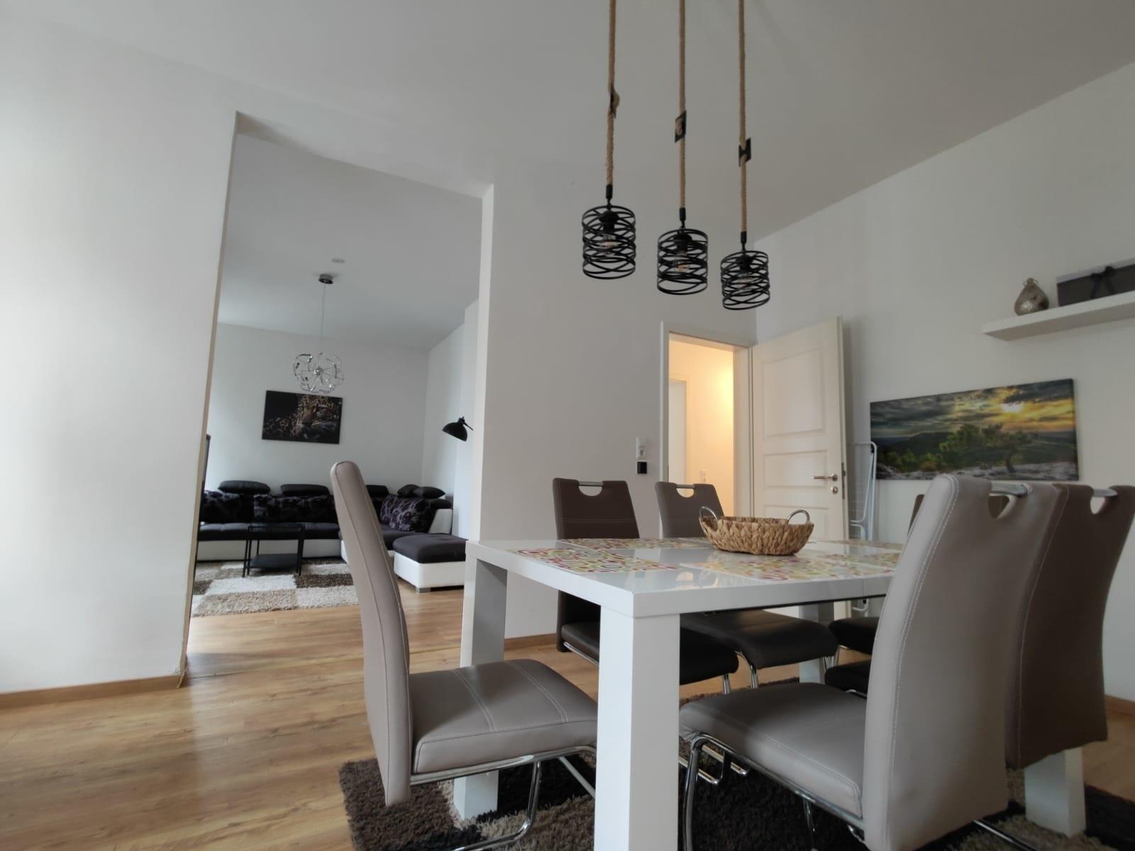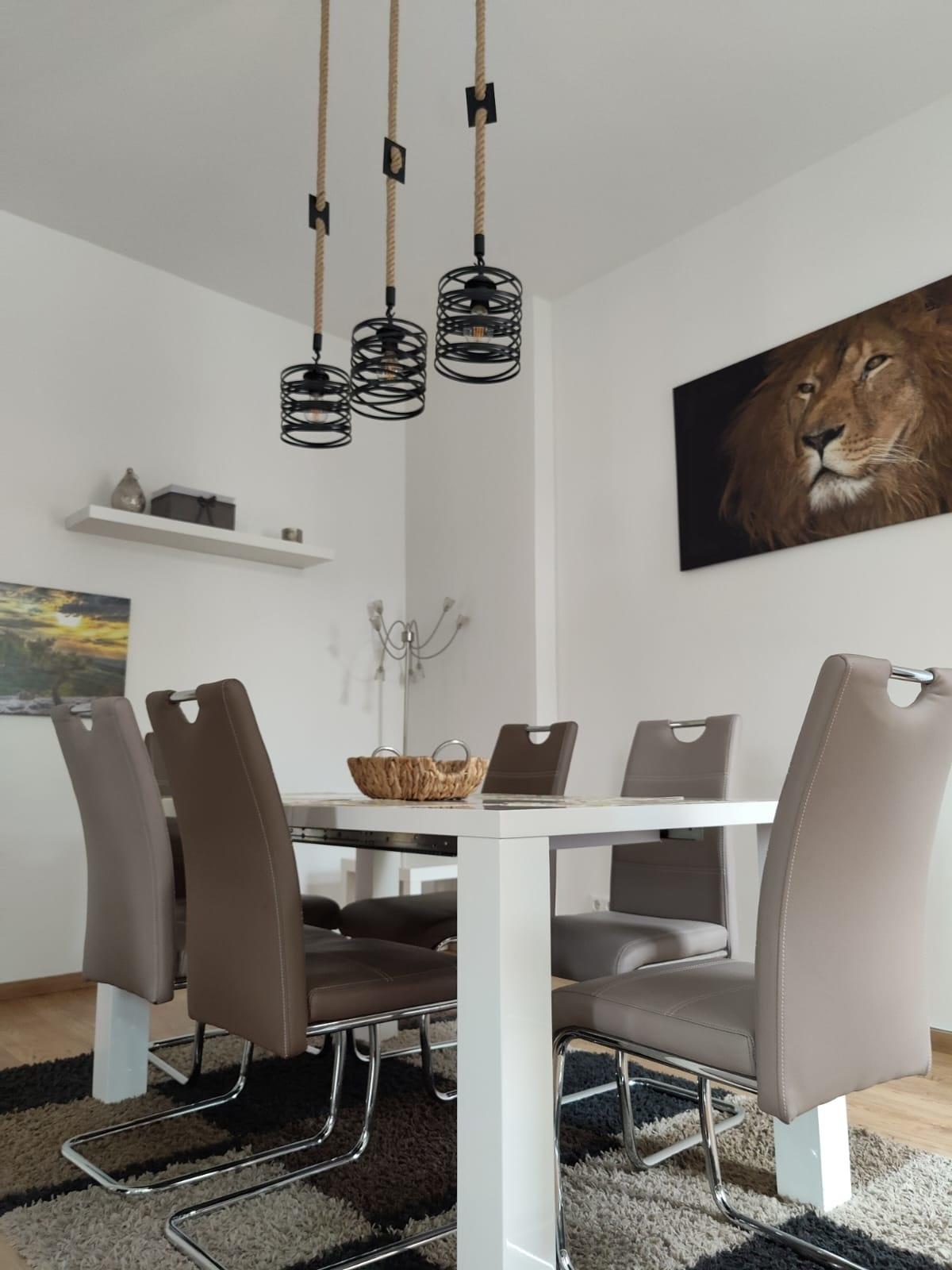 Es steht Ihnen ein großer Essbereich im Durchgangszimmer zum Wohnzimmer, 1 Schlafzimmer mit TV, und ein Schlafzimmer mit separater Couch zur Verfügung ideal für die Kinder. Insgesamt finden Sie Platz für 6 Personen. Haustiere sind bei uns erlaubt (max.2). 1 Satz Handtücher (1 klein und 1 groß) sowie 1 Satz Bettwäsche je Person stehen Ihnen einmalig für den Aufenthalt zur Verfügung (Waschmaschine mit Trockner ist vorhanden).