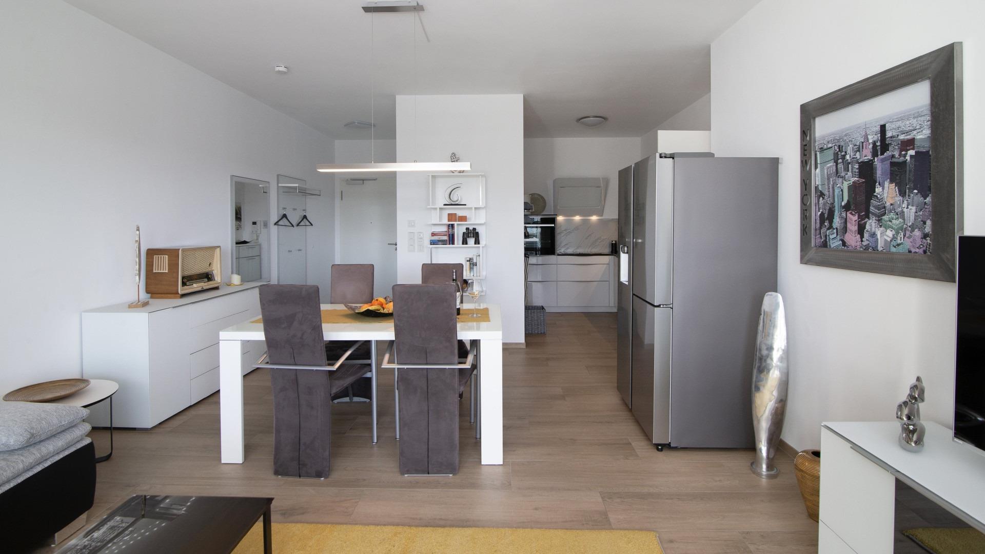 Die Wohnung verfügt über einen kostenpflichtigen Tiefgaragenstellplatz. Der Parkplatz hat eine Überbreite und ist für SUVs geeignet, die Einfahrthöhe beträgt 2 m.
