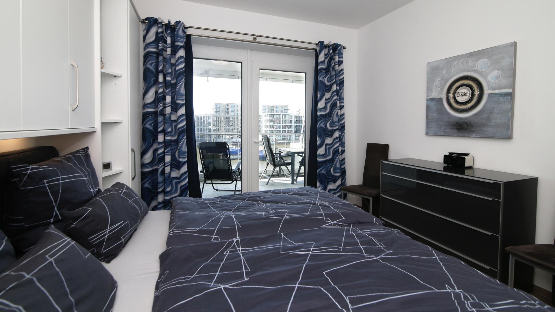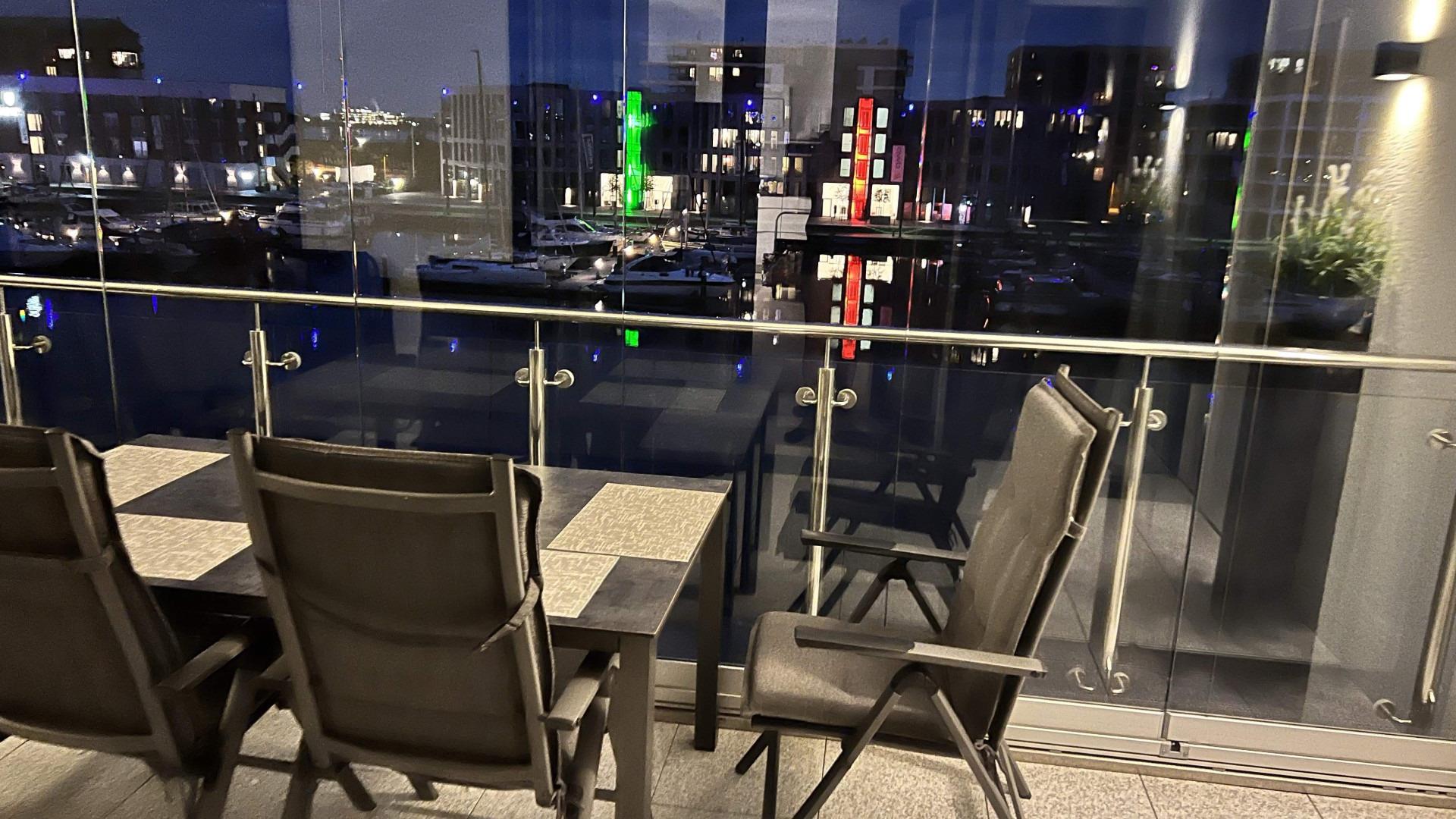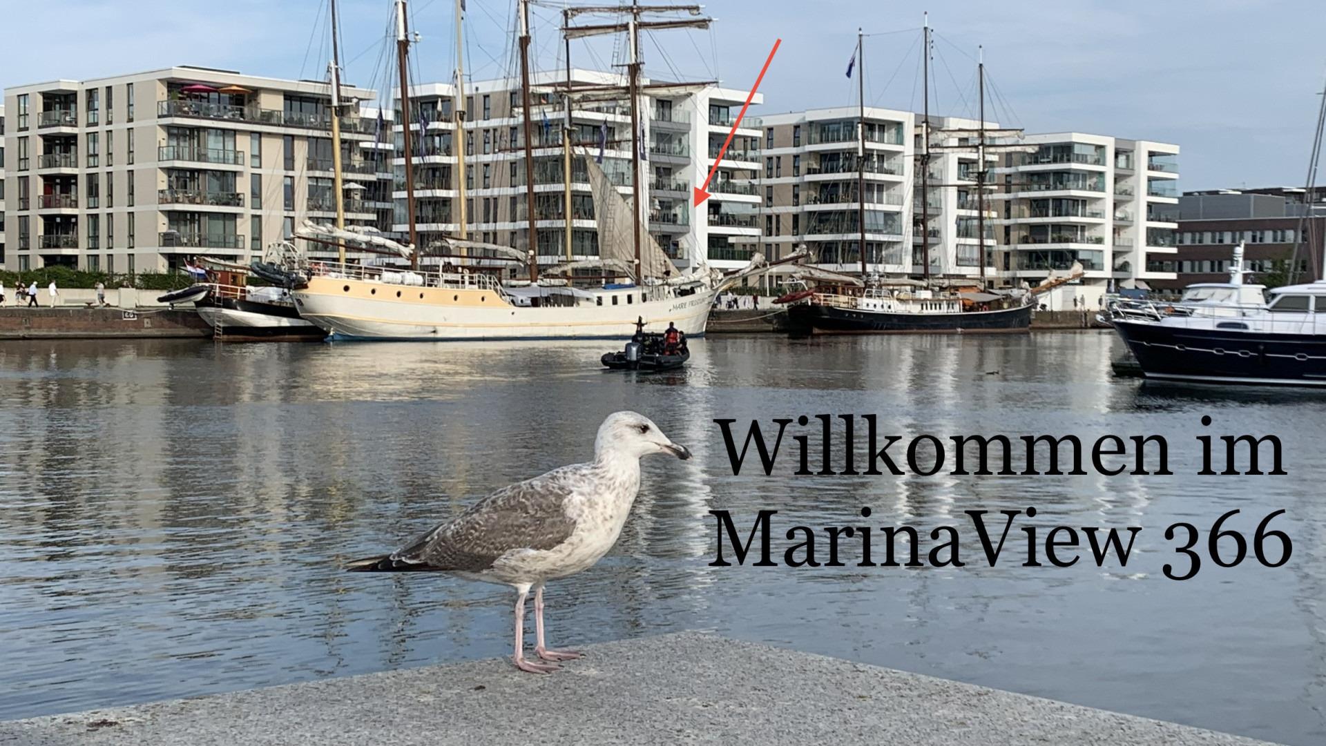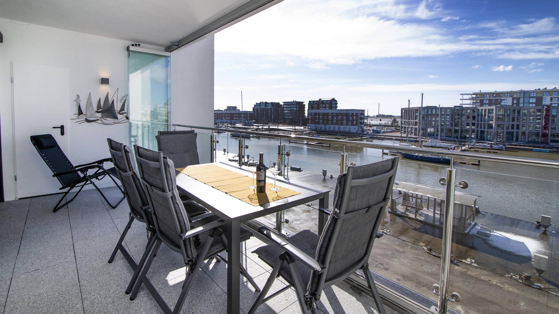 Moderne Ferienwohnung in Bremerhaven mit Balkon und Blick auf den Yachthafen, ideal für entspannte Tage.