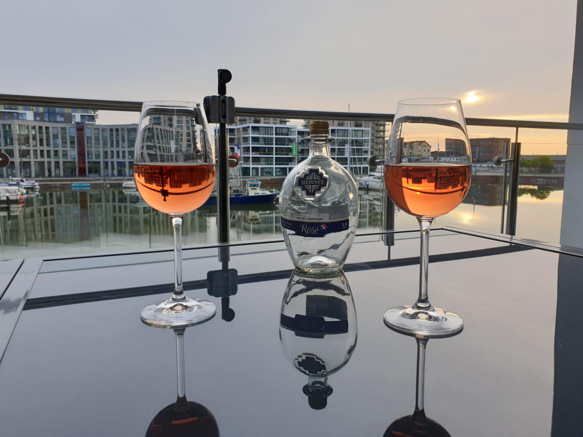 Die Mahlzeiten können Sie in der gemütlichen Essecke oder auf dem Balkon mit maritimem Ausblick genießen.