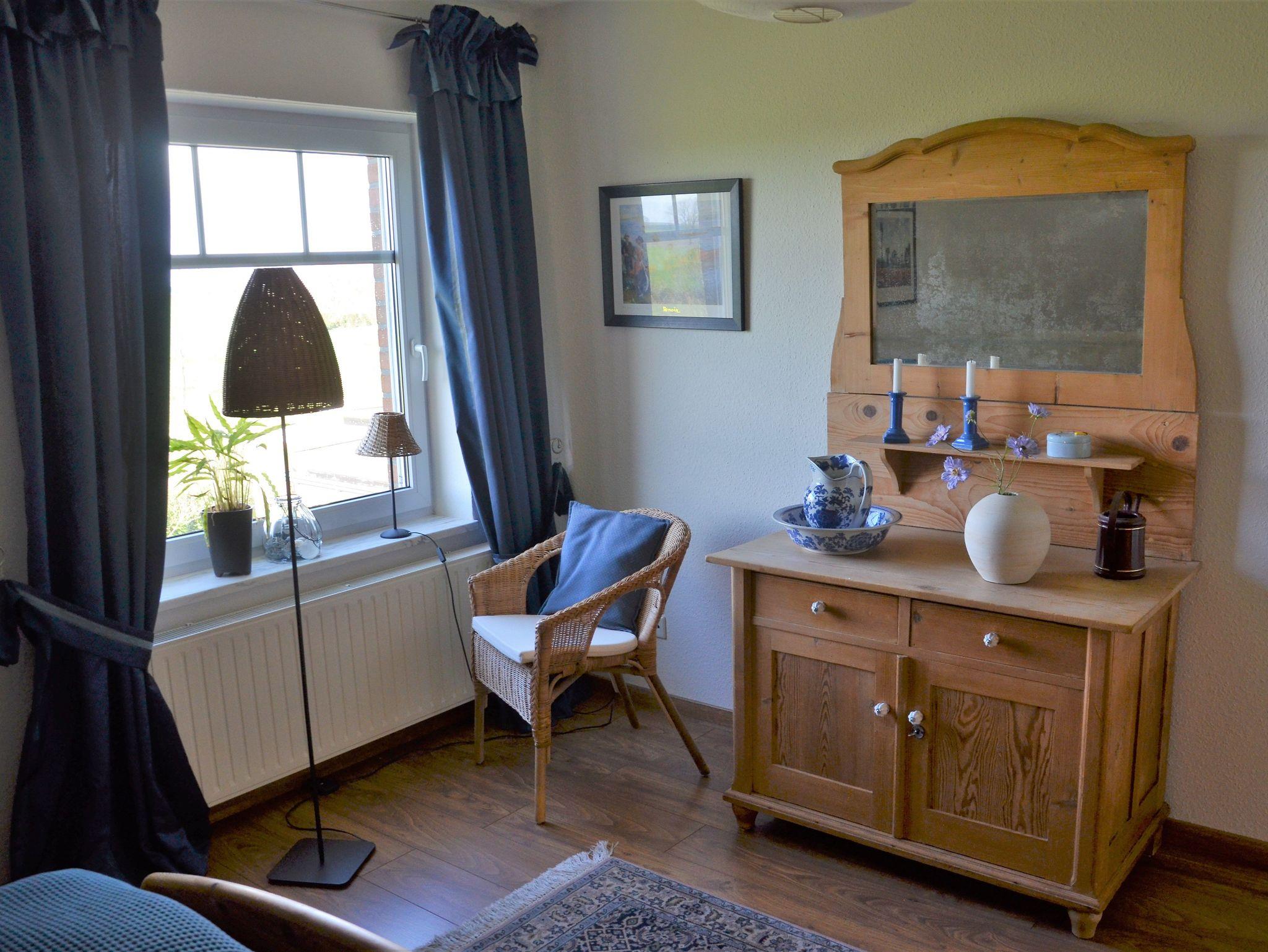 Moderne Ferienwohnung im Obergeschoss mit weitem Blick auf Felder und den Dollartdeich bei Bunde.
