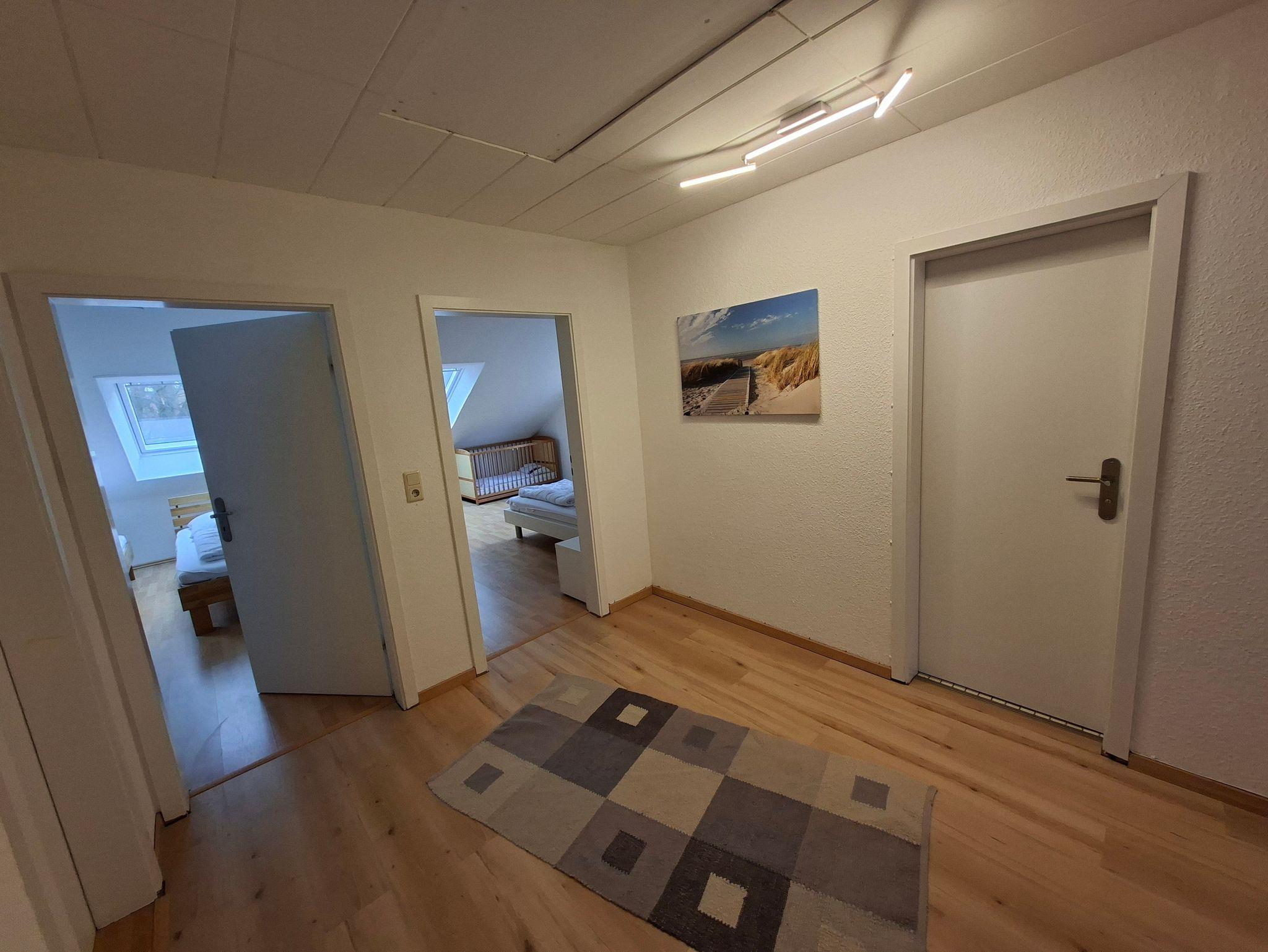Gut ausgestatte, gemütliche Oberwohnung mit 2 Schlafzimmern. Bad mit Dusche, WC und Waschmaschine. Vollständig ausgestattete Küche und Wohnraum mit Essbereich. Neue Couchgartnitur (mit Schlafmöglichkeit) im Wohnzimmer. Alle Dachfenster wurden Ende 2025 erneuert und in den Schlafzimmern mit Rollos versehen. Bettwäsche und Handtücher sind inklusive.