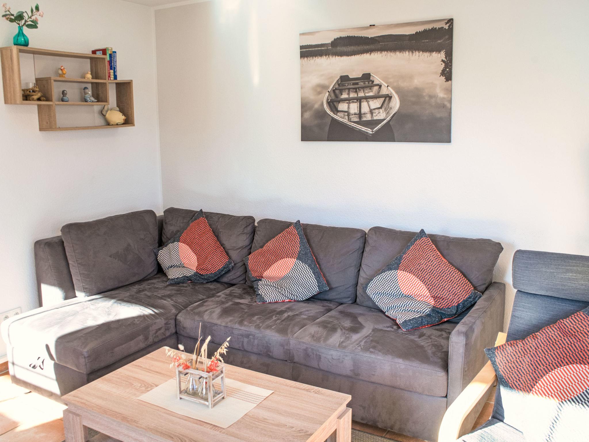 4-Zimmer-Reihenhaus 70 m2 auf 2 Stockwerken. Komfortabel und modern eingerichtet: grosses Wohn-/Esszimmer mit 1 Doppeldiwanbett (160 cm, Länge 200 cm), Kabel-TV (Flachbildschirm). Ausgang zum Garten, zur Terrasse. 1 Zimmer mit 1 Bett (90 cm, Länge 200 cm). Offene Küche (Backofen, Geschirrspüler, 4 Glaskeramikplatten, Wasserkocher, Mikrowelle, elektrische Kaffeemaschine) mit Esstisch. Dusche/WC. G-Heizung. Obergeschoss: 1 Zimmer mit 1 Doppelbett (2 x 90 cm, Länge 200 cm), Kabel-TV (Flachbildschirm). 1 Zimmer mit 2 Betten (90 cm, Länge 200 cm), 2 Ausziehbetten (2 x 90 cm, Länge 200 cm), Kabel-TV (Flachbildschirm). Bad/WC. Terrasse 16 m2. Terrassenmöbel, Gartengrill. Zur Verfügung: Internet (Wireless LAN, gratis). Bitte beachten: Nichtraucher-Unterkunft.