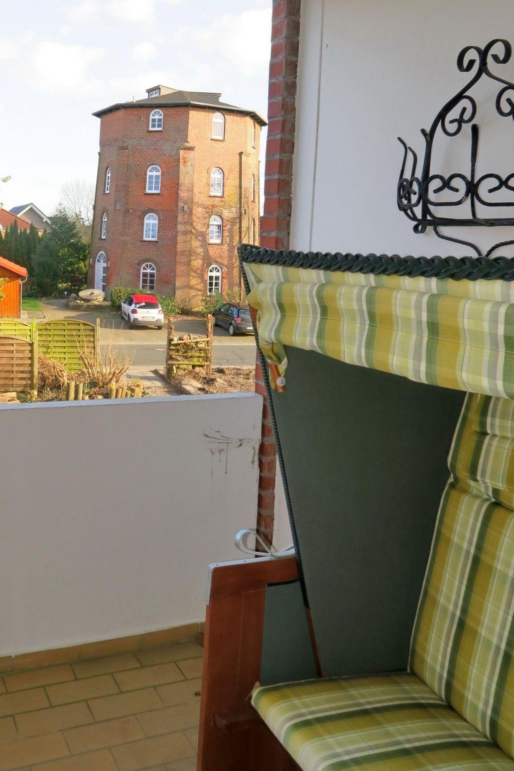 Der Außenbereich der Wohnung überzeugt durch einen einladenden Balkon, ausgestattet mit einem eigenen Strandkorb. Hier können Sie in aller Ruhe die Aussicht auf die historische Mühle genießen und entspannte Stunden im Freien verbringen. Als Teil der Ferienanlage Deichgraf steht Ihnen darüber hinaus ein Hallenbad mit Sauna zur Verfügung, welches Ihnen unvergessliche Momente der Erholung bietet.