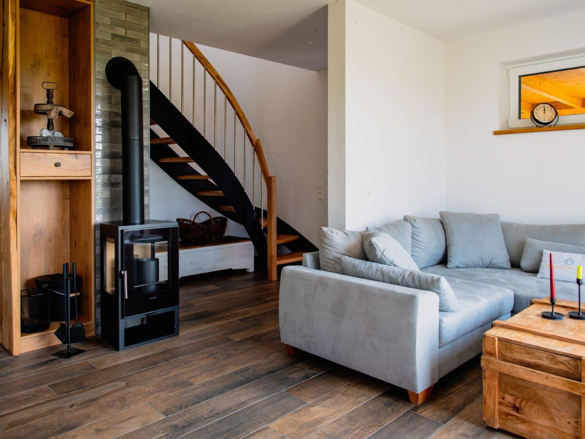 Das Ferienhaus begrüßt sie ganzjährig: Im Sommer laden sie die überdachte Terrasse und der Garten und im Winter die gemütliche Couch vor dem Ofen dazu ein, den Blick auf die freien Wiesen zu genießen.