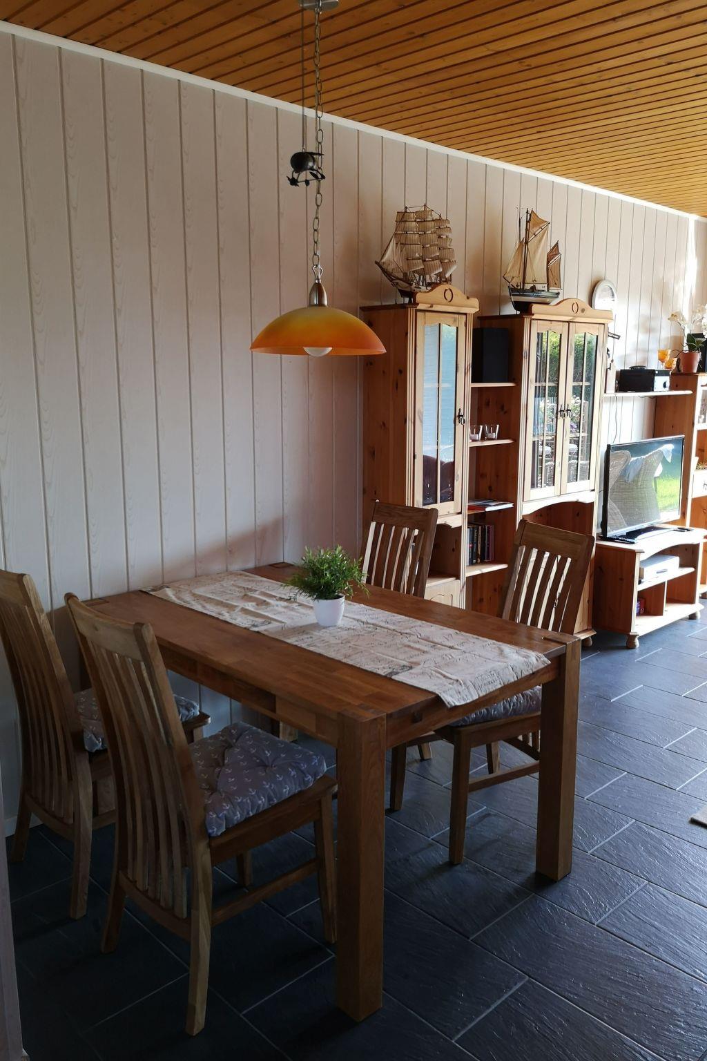 Es handelt sich um einen gut ausgestatteten Ferienbungalow, der 4 Personen einen gemütlichen Nordseeaufenthalt ermöglicht. Er verfügt über einen Wohn-/Essbereich mit Einbauküche, ein Schlafzimmer mit Doppelbett (1,60 x 2m mit durchgehendem Topper), ein Schlafzimmer mit 2 hintereinanderstehenden Einzelbetten (0,80m x 1,80 m), ein Badezimmer mit Dusche und WC und einen kleinen Abstellraum. Vorhanden sind 1 Sat-TV (Wohnzimmer), Hifi-Anlage mit CD, Bluetooth und USB, Waschmaschine, Trockner, Mikrowelle, Backofen, Cerankochfeld, Spülmaschine, Kühlschrank mit Gefrierfach, Kaffeemaschinen (Senseo, Filtermaschine), Wasser- und Eierkocher, Mixer, Fön, Toaster, Bügelbrett, Bügeleisen, Holzkohlengrill, Gesellschaftsspiele und Bücher. Das Haus verfügt über eine moderne Gasheizung und wird ganzjährig vermietet. Außerdem bieten wir unseren Gästen kostenloses W-LAN.