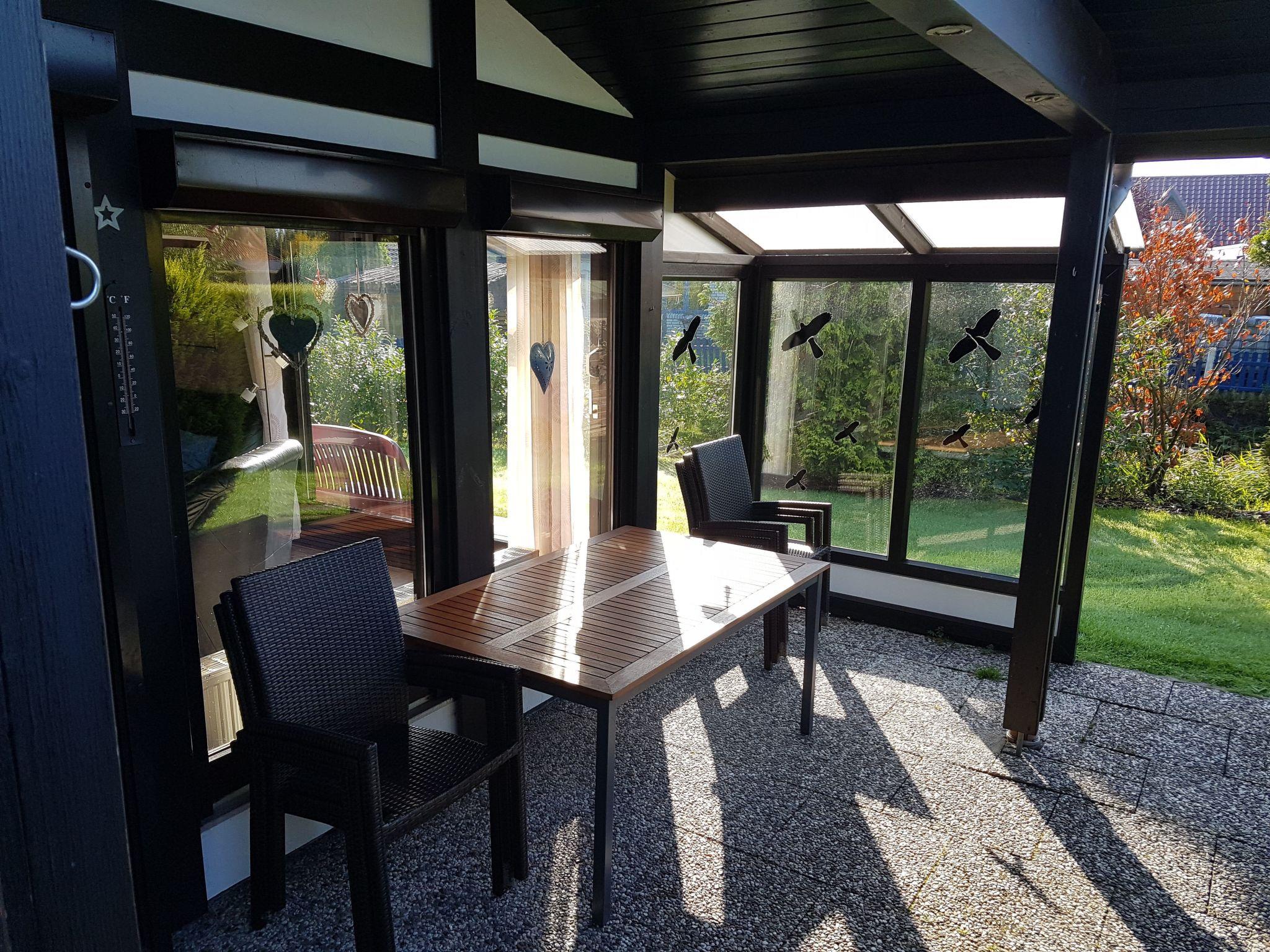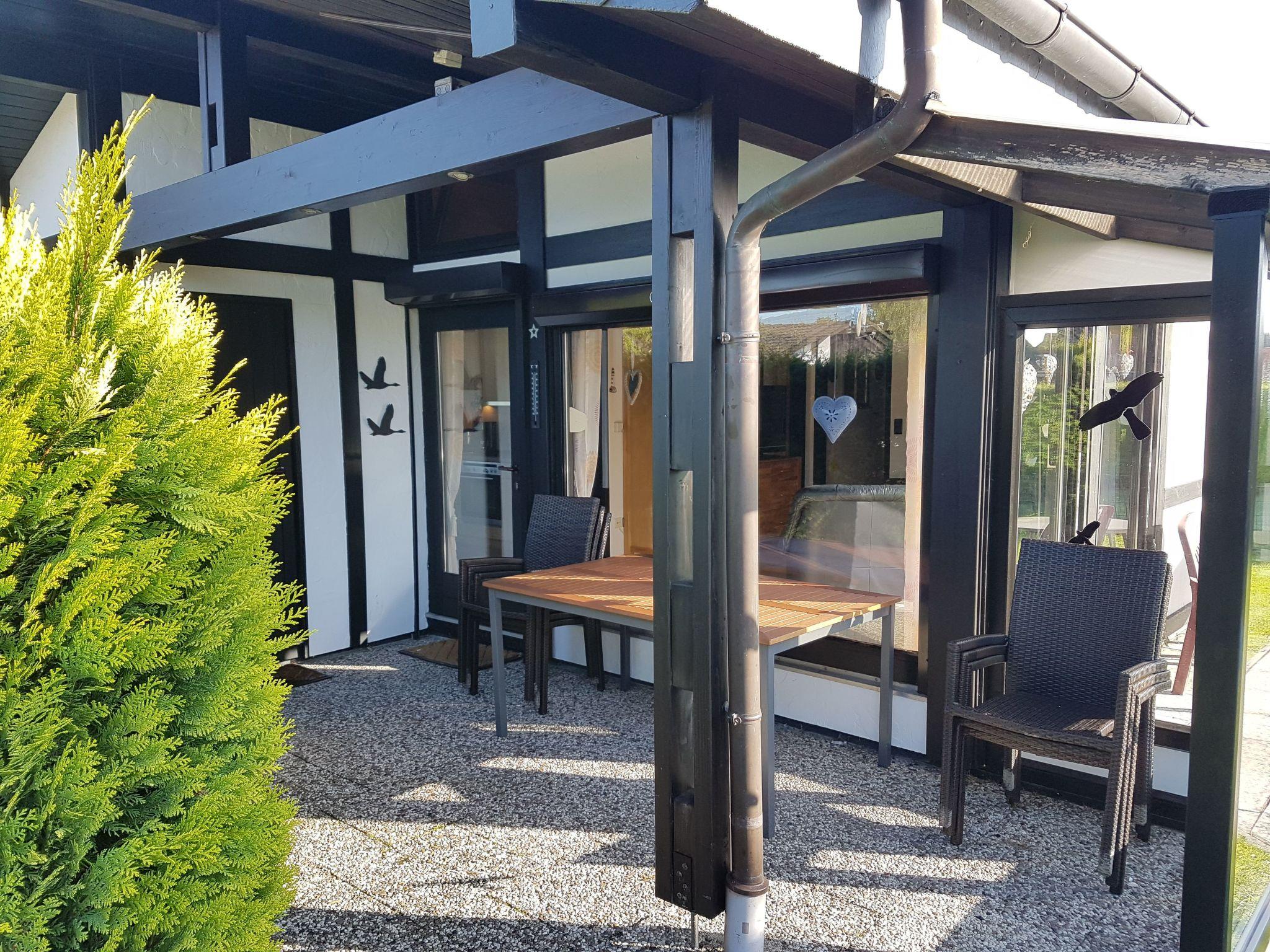 Genießen Sie angenehme Stunden im Außenbereich auf der überdachten Terrasse, die mit Gartenmöbeln ausgestattet ist. Der Bungalow befindet sich in einem ruhigen Ferienpark, der besonders für Familien mit spielenden Kindern ideal ist. Ein eigener PKW-Stellplatz direkt auf dem Grundstück sorgt für bequeme An- und Abreise.