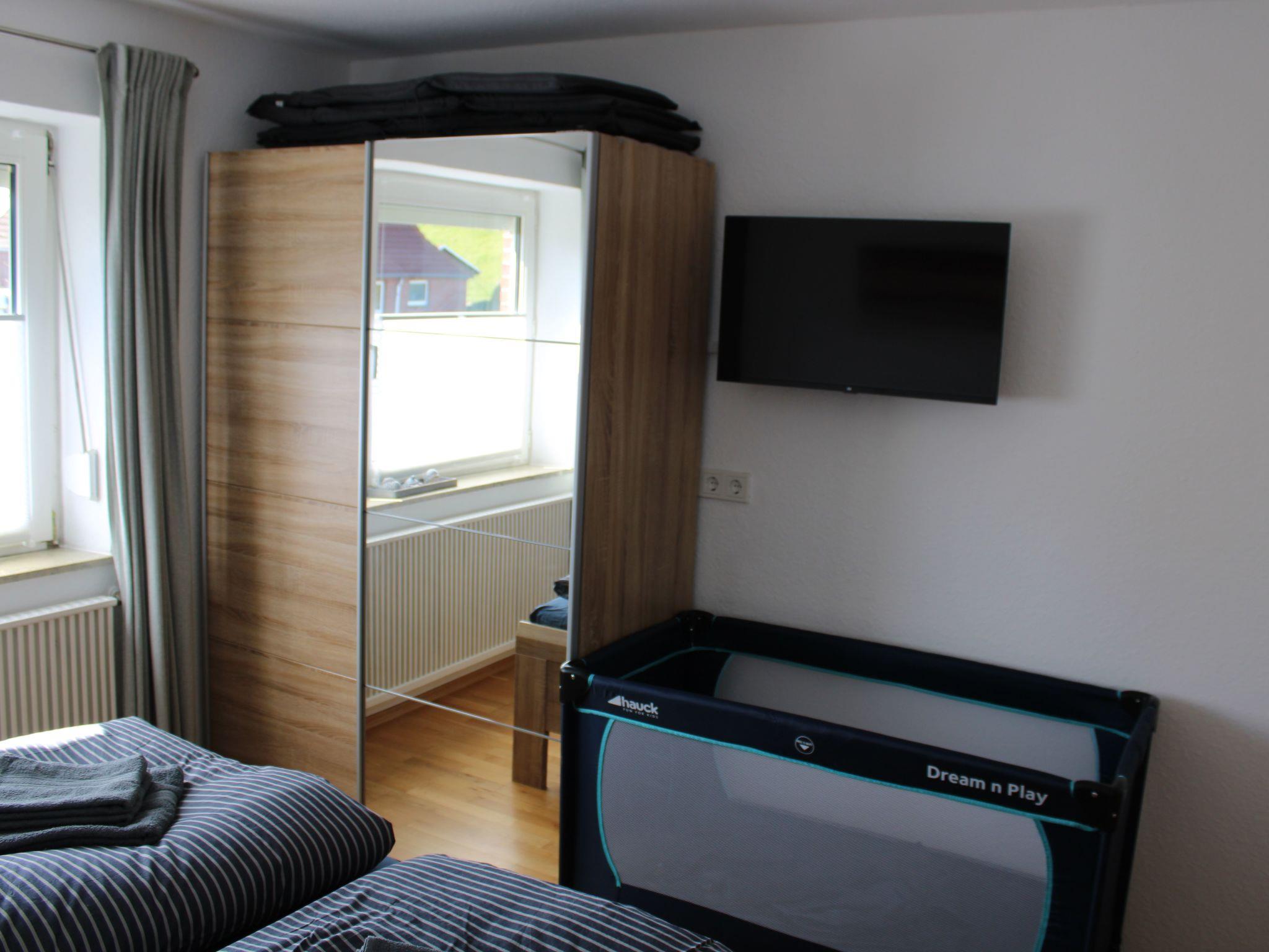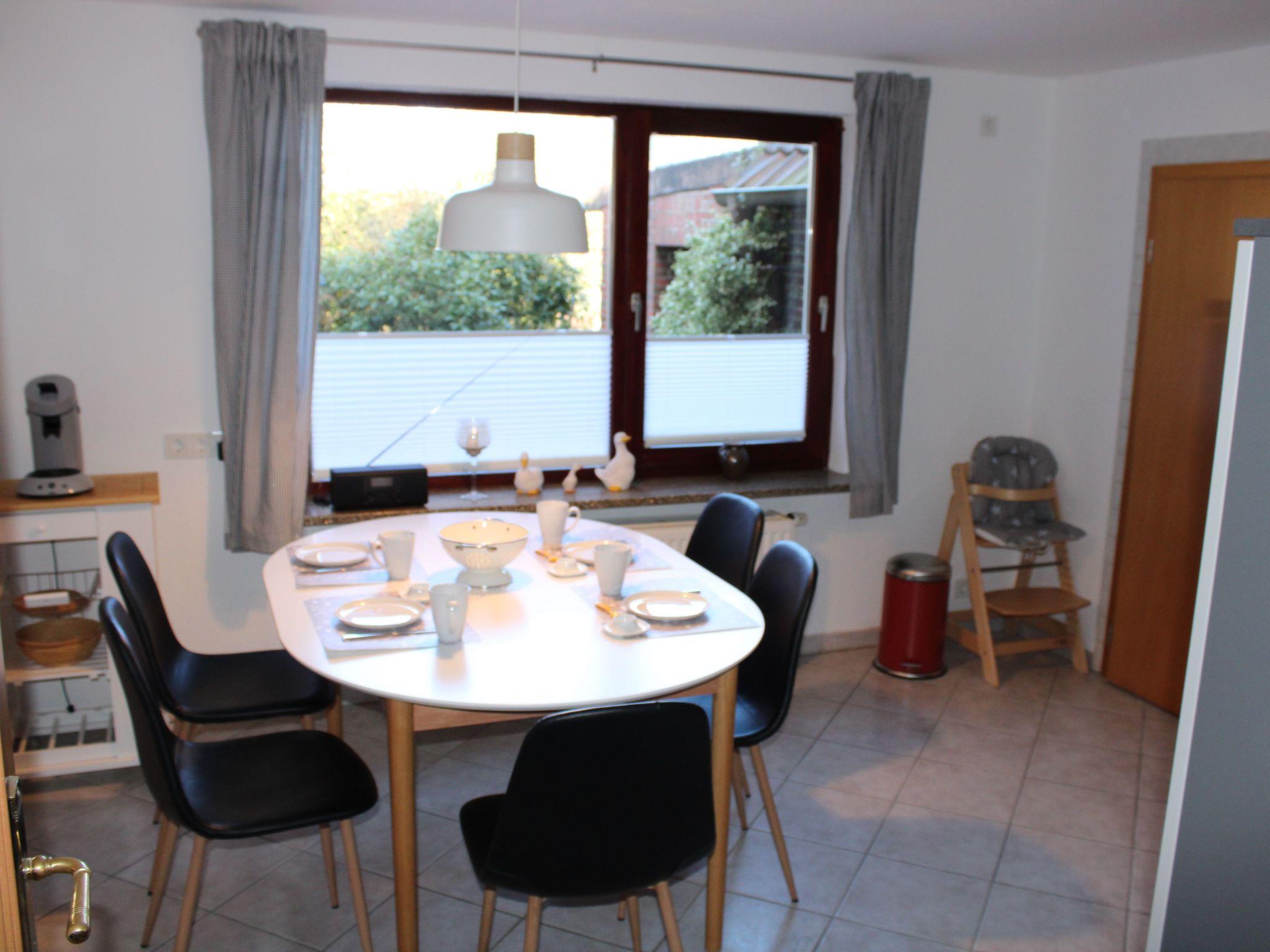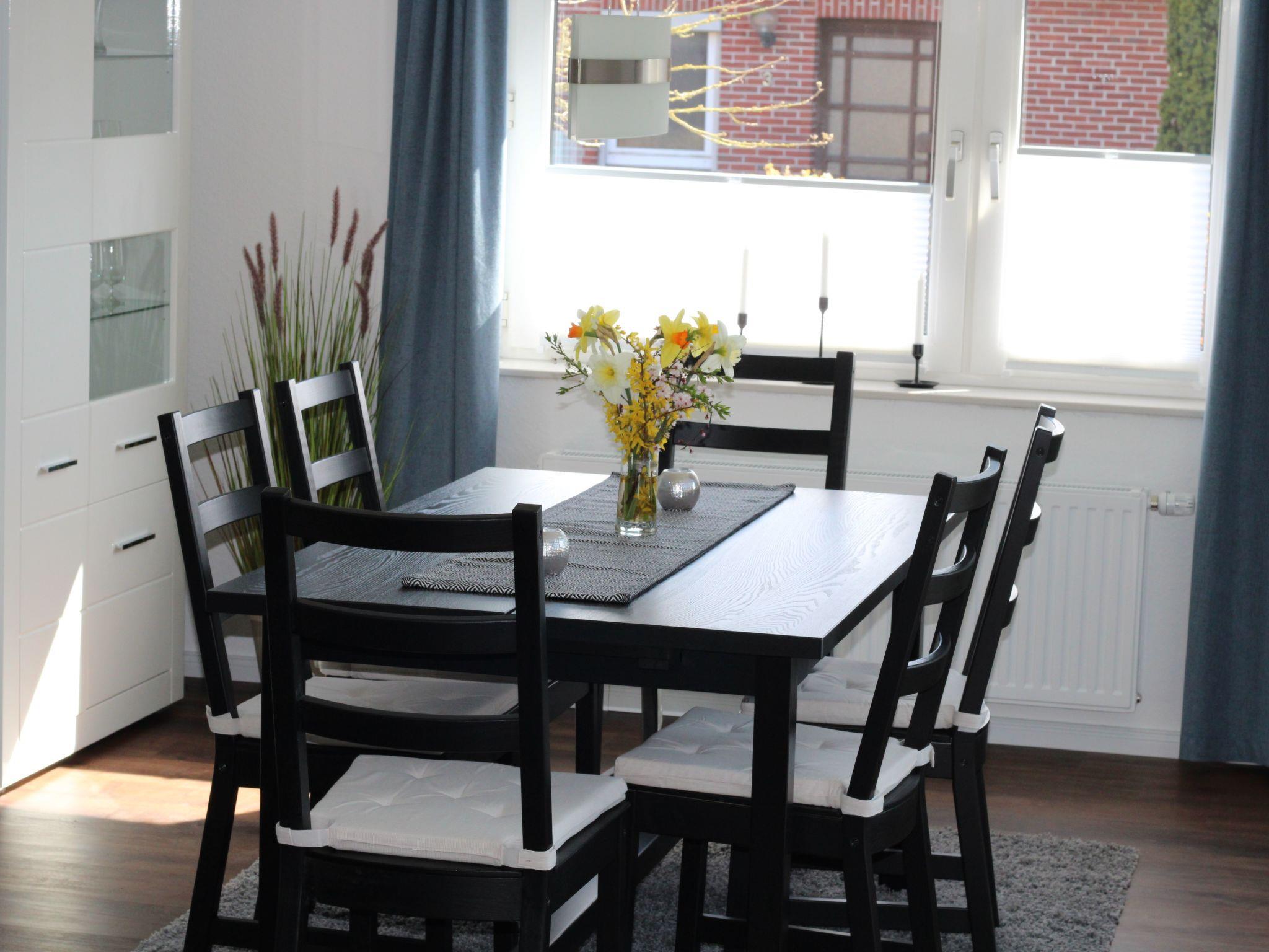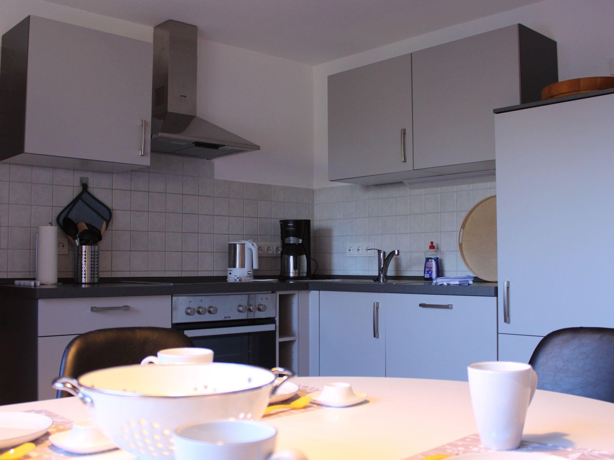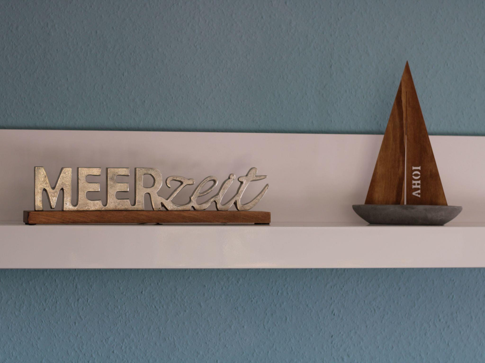 Die 100qm goße Ferienwohnung "Meerzeit" mit zwei Schlafzimmern (ein Schlafzimmer mit Doppelbett, Schrank, TV und ein Schlafzimmer mit zwei Einzelbetten, Schrank, TV), Wohn- Esszimmer mit eimem großem, gemütlichem Sofa, großem TV, grosser Esstisch und Terasse. Für kleine Gäste erhalten sie auf Wunsch ein Reisebett und einen Hochstuhl. Komplett ausgestattete Küche mit Ceranfeld, Backofen, Geschirrspüler, Mikrowelle, Wasserkocher, Filter- und Senseo Kaffeemaschine und vieles mehr. Badezimmer mit ebenerdiger Dusche und Fön. Durch einen zweiten Eingang kommen Sie direkt in einen Vorraum mit Waschmaschine, Bügelbrett und Wäscheständer. Dort besteht die Möglichkeit bis zu vier Fahrrader abzustellen.