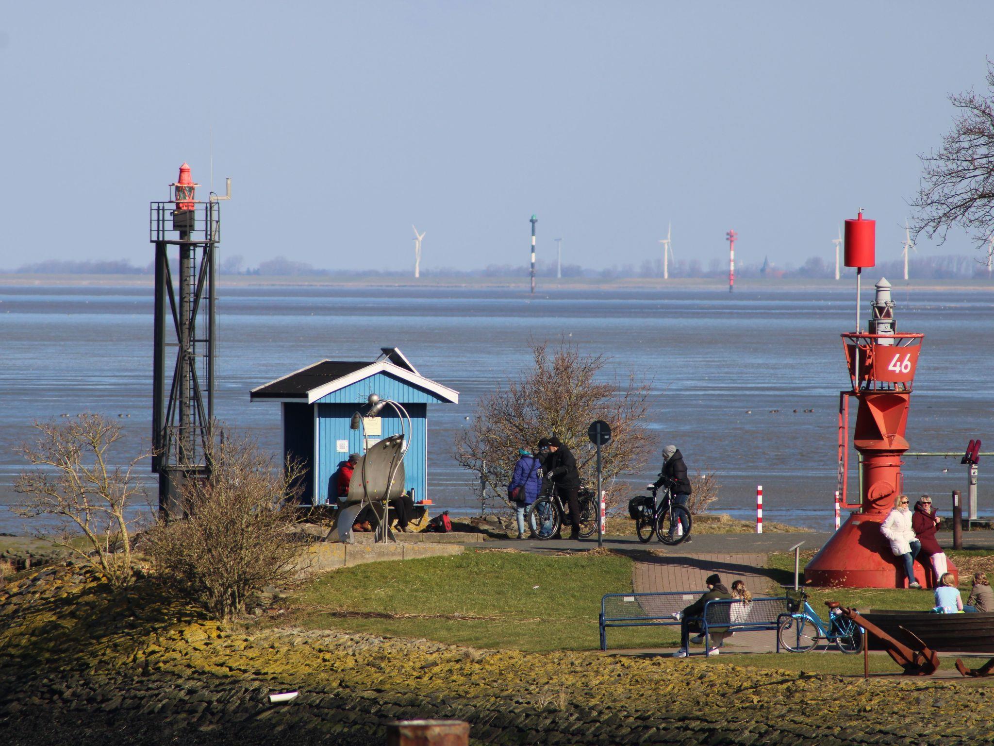 Der schöne Hafen mit dem Nationalpark-Haus Fedderwardersiel, angeschlossenen Museum, dem Ausflugschiff Wega und den kleinen Fischkuttern ist ca. 600m entfernt. Die Nordseelagune erreichen sie zu Fuß in ca.10 Minuten und lädt zum sonnen und baden auch bei Ebbe ein. Zum Naturerlebnispfad Langwarder Groden sind es nur ca. 3km. Es gibt wunderschöne Radwanderwege, Wassersportmöglichkeiten (Kitesurfen), geführte Wattwanderungen, Angeln. Beliebt sind Tagesfahrten nach Bremerhaven ins Klimahaus, Auswandererhaus und Zoo am Meer. Einkaufmöglichkeiten und auch ein schönes Restaurant haben Sie direkt am Hafen. Der Ort Burhave ist ca.1km entfernt. Dort befinden sich u.a. gemütliche Restaurants, Bäcker, zwei Supermärkte, eine Tankstelle, Ladesäule für Elektroautos, EC-Automaten, die Spielescheune für die Kids, ein Fahrradverleih und eine Minigolfanlage, eine Bäderärztin und eine Apotheke. In ca.12km Entfernung befindet sich der Center Parks Nordseeküste mit dem Badeparadies Aqua Mundo.