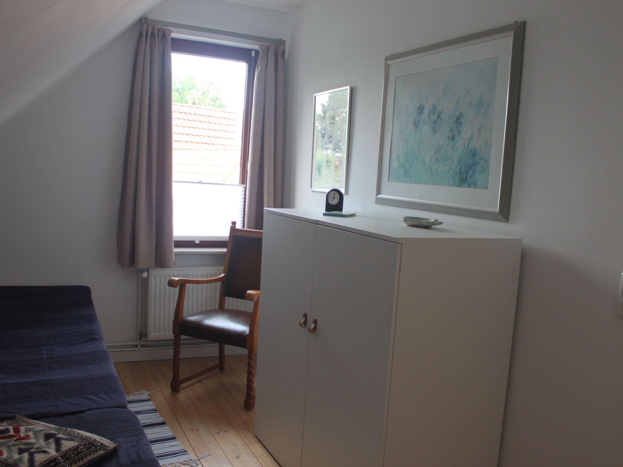 Im Erdgeschoss befinden sich ein Schlafzimmer mit Doppelbett, ein modernes Badezimmer sowie das „Highlight“, die hochwertig ausgestattete Küche mit dem direkt anschließenden großzügigen Esszimmer. Über eine relativ steile Treppe gelangt man in die obere Etage. Hier lädt ein großes Wohnzimmer zum Entspannen ein. Weiterhin finden Sie im Obergeschoss ein Schlafzimmer mit einem Einzelbett und nebenan nochmals ein weiteres Schlafzimmer mit zwei Einzelbetten unter der Dachschräge.