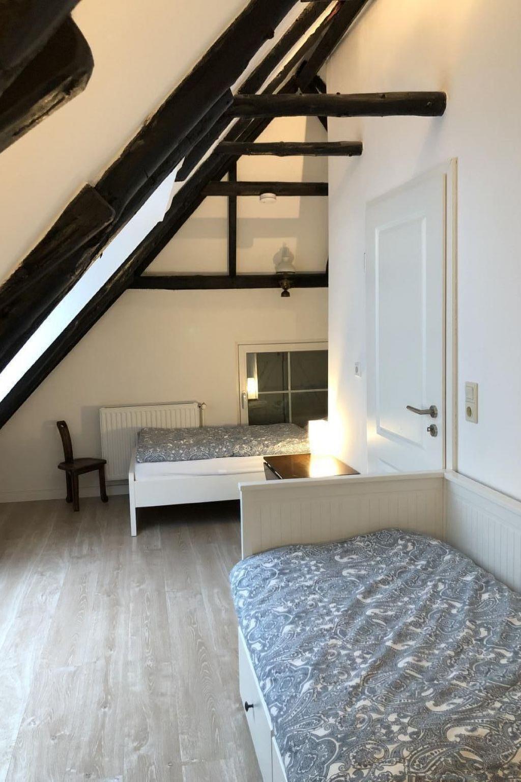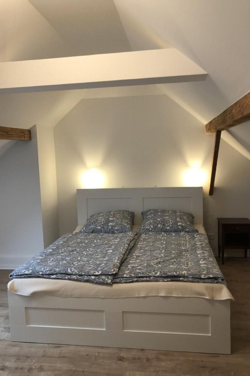 Schlafzimmer 6 Sonstige Schlafzimmereinrichtung : Dachgeschoss Diekhuus / Das 80x200 Bett kann zu einem Doppelbett umfunktioniert werden (IKEA HEMNES)