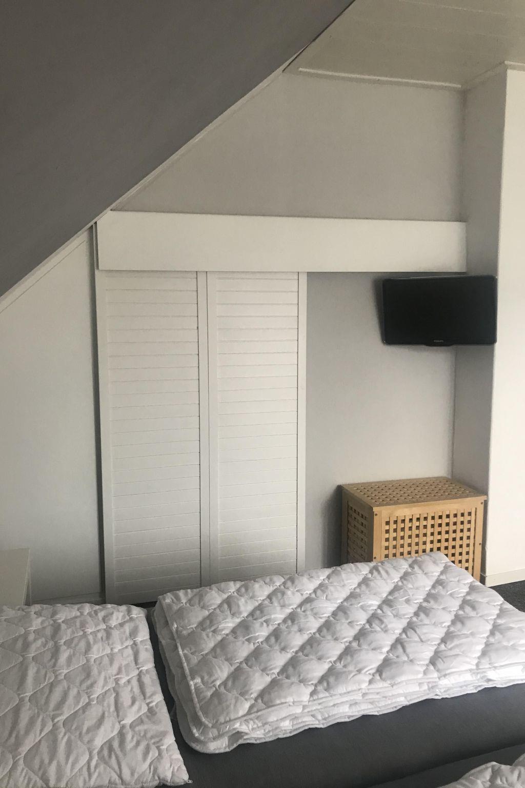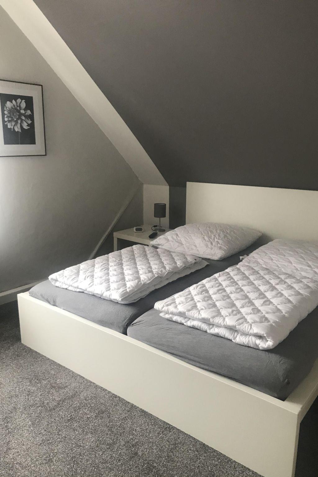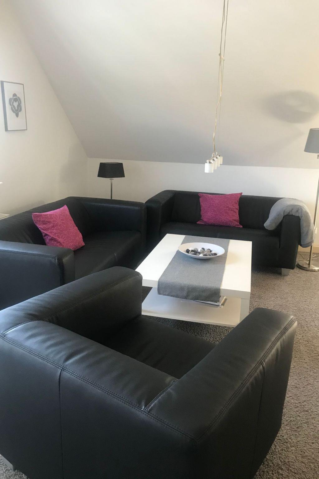 Innen bietet diese 50m² große Ferienwohnung, die sich im oberen Stockwerk eines Einfamilienhauses befindet, eine angenehme Ausstattung, die zum Verweilen einlädt. Neben einem gemütlichen Wohnbereich mit Fernseher steht Ihnen eine hervorragend ausgestattete Küche mit Cerankochfeld, Kaffeemaschine inklusive Pads-Option, Wasserkocher und weiteren Annehmlichkeiten zur Verfügung. Für eine erholsame Nacht sorgt das Schlafzimmer mit einem komfortablen Doppelbett und einem weiteren Fernseher, während das Badezimmer mit einer Dusche und zwei Waschbecken keine Wünsche offenlässt.