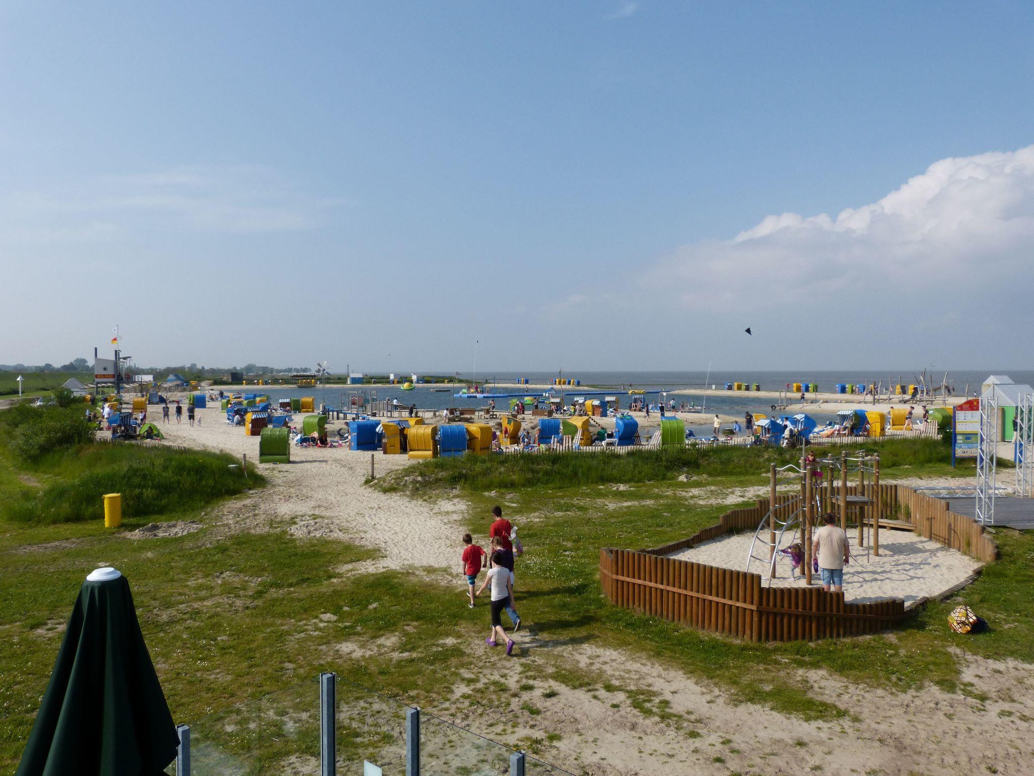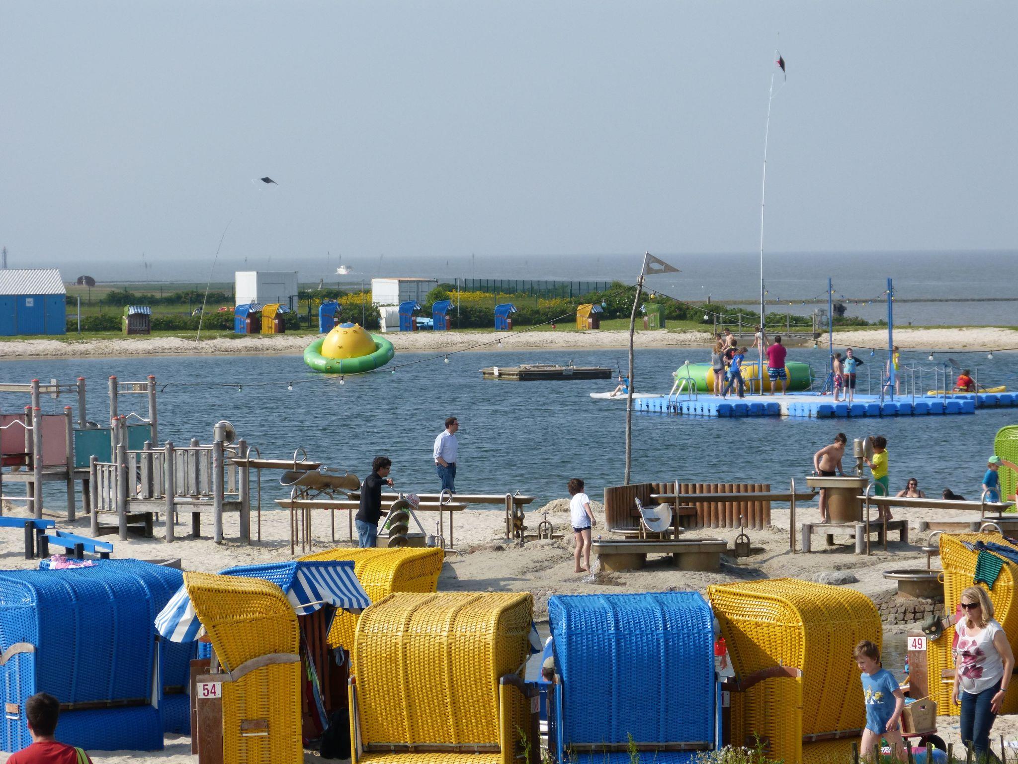 Die Villa Linus befindet sich in einem geschlossenen Ferienpark ohne Durchgangsverkehr. Das Naturschutzgebiet am Wattenmeer lädt mit seinem Vogelgezwitscher und Ruhebänken zum Beobachten der Vogelwelt ein. Zwischen Naturschutzgebiet und kleinem Yachthafen befindet sich der Kutterhafen von Fedderwardersiel. Kommen die Kutter vom Fang zurück kann man die fangfrischen Krabben direkt kaufen. Nicht jedermanns Sache sagen Sie? Dann genießen Sie den frischen Fisch in nahegelegenen Restaurants, an den Fischbuden oder aus der Fischereigenossenschaft. Außerdem befindet sich ein uriges Lebensmittelgeschäft mit frischen Brötchen im Hafen. Der große Supermarkt ist nur ca. 2 Km entfernt in Burhave. Aber an der Nordsee geht es nicht nur um Essen und Trinken, man kann seinen Tag am Sandstrand in ca. 2 Km Entfernung oder in dem Meerwasser-Badesee "Nordseelagune" verbringen. An stürmischeren Tagen bietet sich für Groß und Klein die Spielscheune mit Kletterwand, in Burhave an. Die Wega II begleitet Sie zu Ausflügen durch die Nordsee. Eine geteerte Promenade hinter dem Deich, mit vielen Ruhebänken und Skulpturen, ist für Fahrradausflüge, Kinderwagen oder gehbehinderte Menschen der ideale Weg für einen Spaziergang an der See. Oder spazieren Sie über die 200 m lange Brücke, vor der Lagune ins Wattenmeer. Hier berauscht das Rauschen der Wellen und die frische Nordseebriese Ihre Sinne.