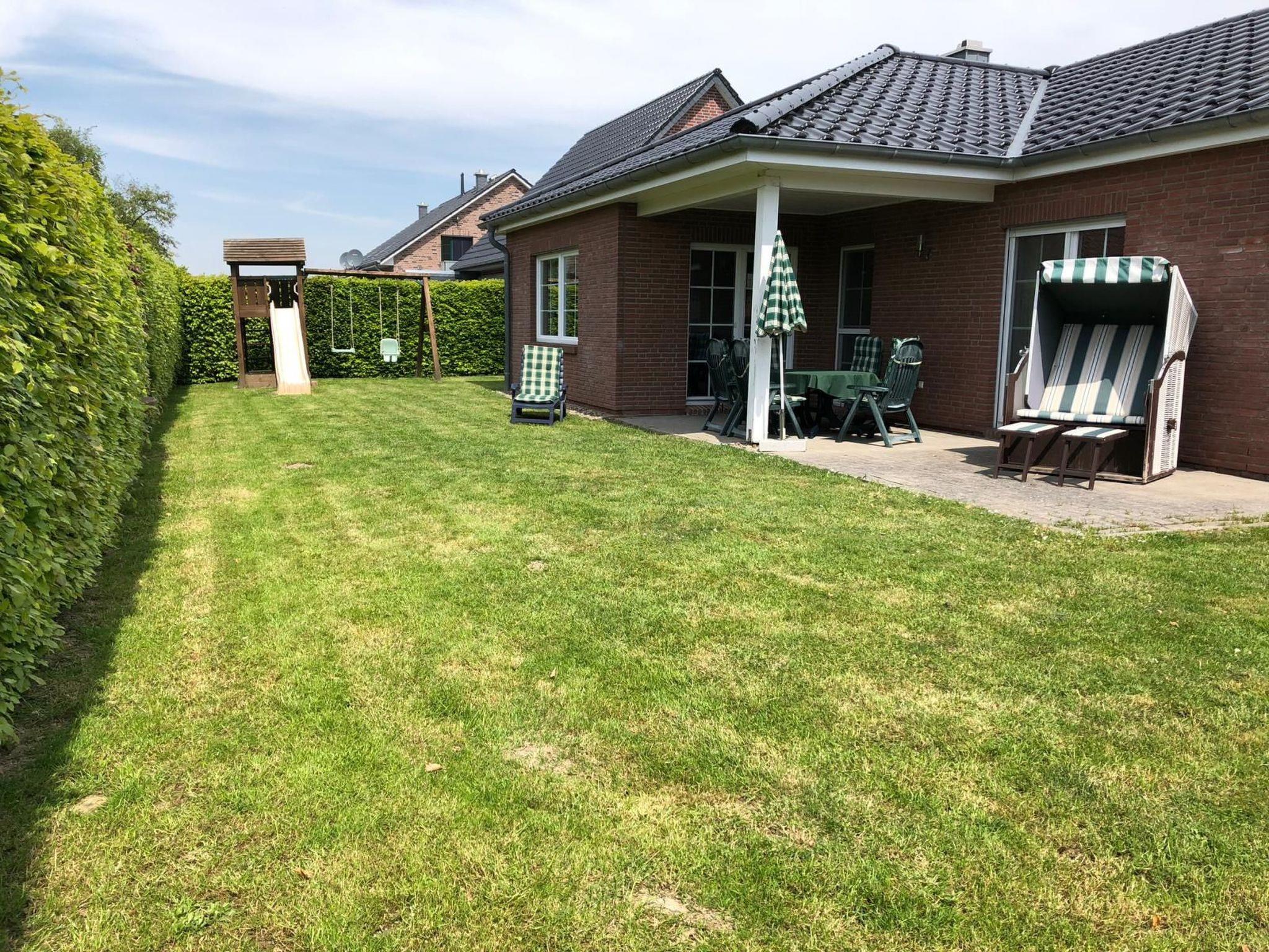 Der großzügige, komfortabel eingerichtete Nichtraucher-Bungalow bietet auf 115 m² ebenerdiger Wohnfläche alle Voraussetzungen für einen erholsamen Urlaub. Nach Betreten des Hauses empfängt Sie gleich die helle und freundliche Atmospäre des weitläufigen, komplett neu eingerichteten komfortablen Bungalows. Das Haus verfügt über 3 Schlafzimmer, die ausreichend Platz zum Zurückziehen bieten. Sie können zwischen zwei Doppelbettzimmer und einem kleineren Zweibettzimmer (mit Tisch zum Wickeln)wählen. Alle Schlafzimmer sind mit einem Schrank ausgestattet, so dass jeder Gast genügend Ablagefläche vorfindet. Des Weiteren stehen 2 Bäder zur Verfügung. Ein Bad ist mit einer Dusche und WC ausgestattet. Das zweite Bad mit WC bietet neben einer ebenerdiger Dusche zusätzlich auch noch eine Badewanne. Im weitläufigen Wohnbereich mit Flachbildschirm-Fernseher lädt eine große, gemütliche Sofaecke zum Ausspannen ein und der Essplatz für 6 Personen bietet ausreichend Platz zum Essen und Spielen. Für wohlige Wärme an kalten Wintertagen oder einfach für gemütliche Stunden das ganze Jahr über, sorgt der Kaminofen. Die an den Wohnbereich angrenzende offene, helle und freundliche Küche ist mit Backofen, Ceranfeld, Kühlschrank mit Gefrierfach, Mikrowelle und Spülmaschine komplett ausgestattet. Ein Abstellraum im Haus und ein Carportzum Unterstellen des Autos und von Fahrrädern komplementieren die komfortable, großzügige Ausstattung des Bungalows. Vom Wohnbereich, von einem der Doppelbettschlafzimmer und von der Küche aus gelangt man über Terrassentüren auf die Terrasse hinter dem Haus und in den Garten, der von einer neu gepflanzeten Hecke umrandet wird. Terrassenmöbel stehen zur Verfügung. Die Größe und ebenerdige Bauart, sowie der große, offene Wohn- und Küchenbereich und das Badezimmer mit einer barrierefreien Dusche bieten auch genügend Bewegungsfreiheit für Rollstuhlfahrer. Ein Babyreisebett und ein Kinderhochstuhl stehen ebenfalls zur Verfügung.