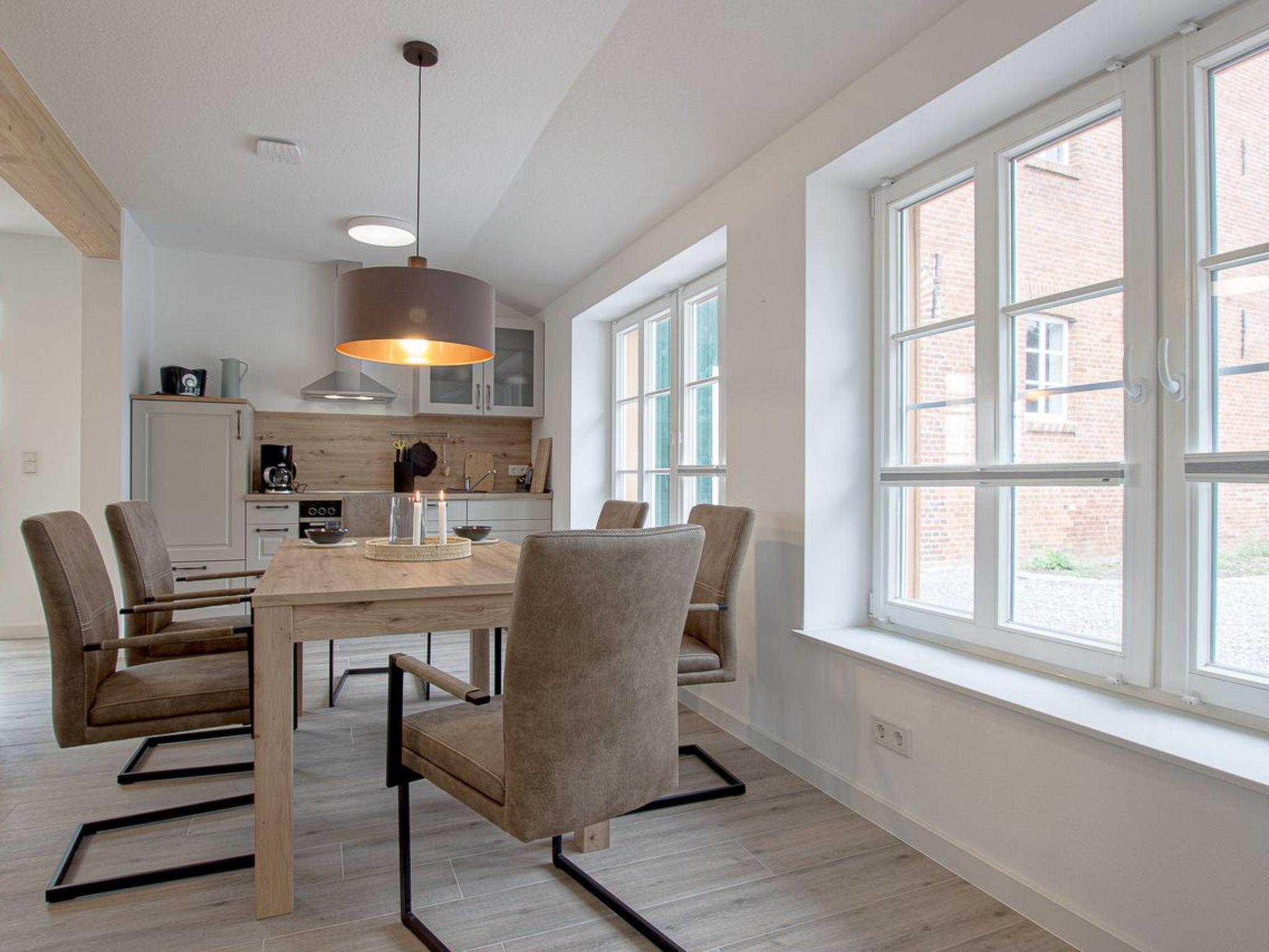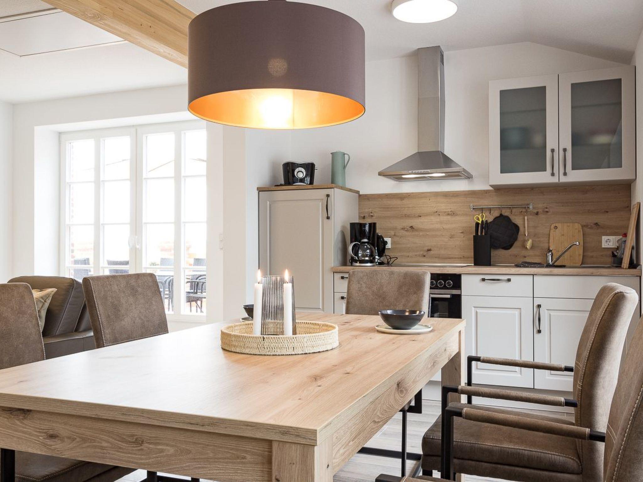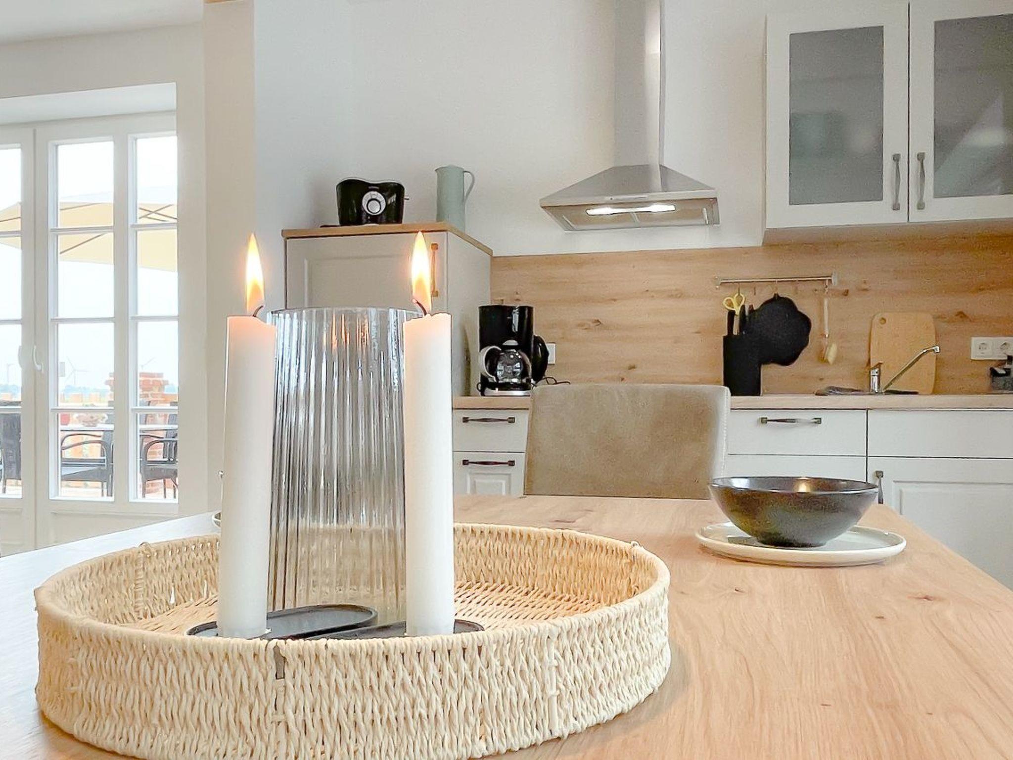 Die Wohnung ist barrierearm. Für Elektroautos steht eine Walbox zur Verfügung und Unterstellmöglichkeiten für Fahrräder usw. gibt es in der großen Diele. Dort können auch E-Räder aufgeladen werden. Ein Wirtschaftsraum mit Waschmaschine und Trockner steht allen Gästen gemeinschaftlich zur Verfügung. Die Gastgeber bieten einen Brötchenservice an. Für Kleinkinder steht auf Nachfrage ein Gästebett und ein Hochstuhl zur Verfügung.