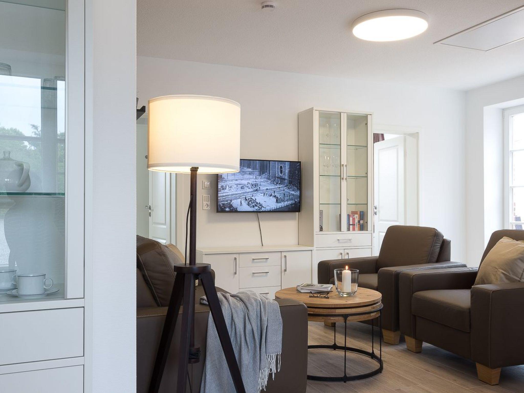 Das Erdgeschoss, etwa 65 m² groß, besteht aus folgenden Zimmern: Wohnzimmerbereich mit einer gemütlichen Couchgarnitur und Flatscreen-Fernseher/SAT TV; ein Schlafzimmer daneben gelegen mit Doppelbett/Boxspringbett (1.80 m); ein Schlafzimmer mit 2 Einzelbetten - die Betten sind mit hochwertigen Matratzen ausgestattet; eine vollausgestattete Küche mit Herd, Backofen, Spülmaschine, Mikrowelle auf Anfrage, Toaster, Wasserkocher, Kaffeemaschine und Essecke mit 6 Stühlen, sowie ein angrenzendes Bad mit barrierefreier Dusche und InfrarotSauna, Föhn. Bettwäsche, Handtücher, Geschirrtuch, Spülset sind im Preis enthalten.