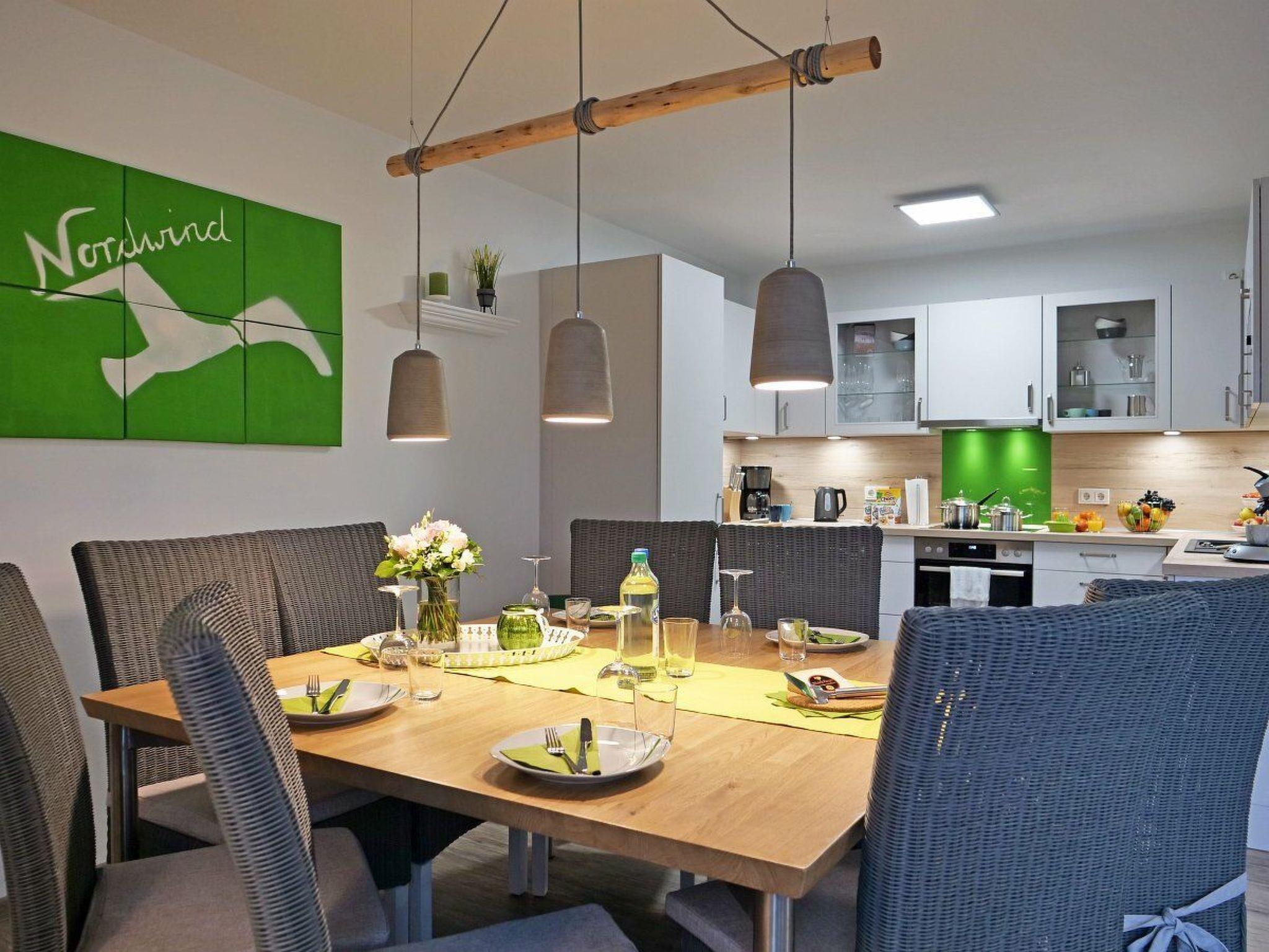 Das Haus "Nordwind" wurde im Landhausstil hochwertig eingerichtet und verfügt über eine exklusive Ausstattung mit großem Wellnessbad mit Sauna und Whirlpool (ca. 17 m²), Terrasse, Balkon im OG, Kaminofen, Fußbodenheizung und Insektenschutz.
