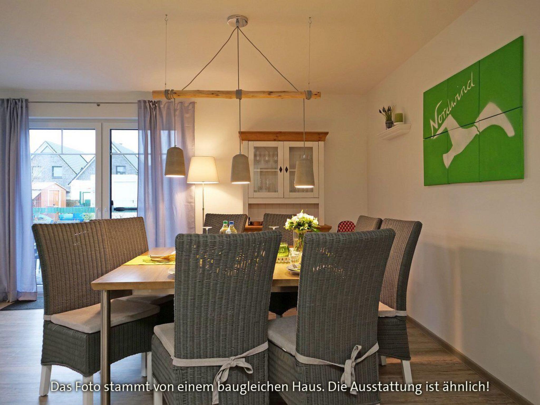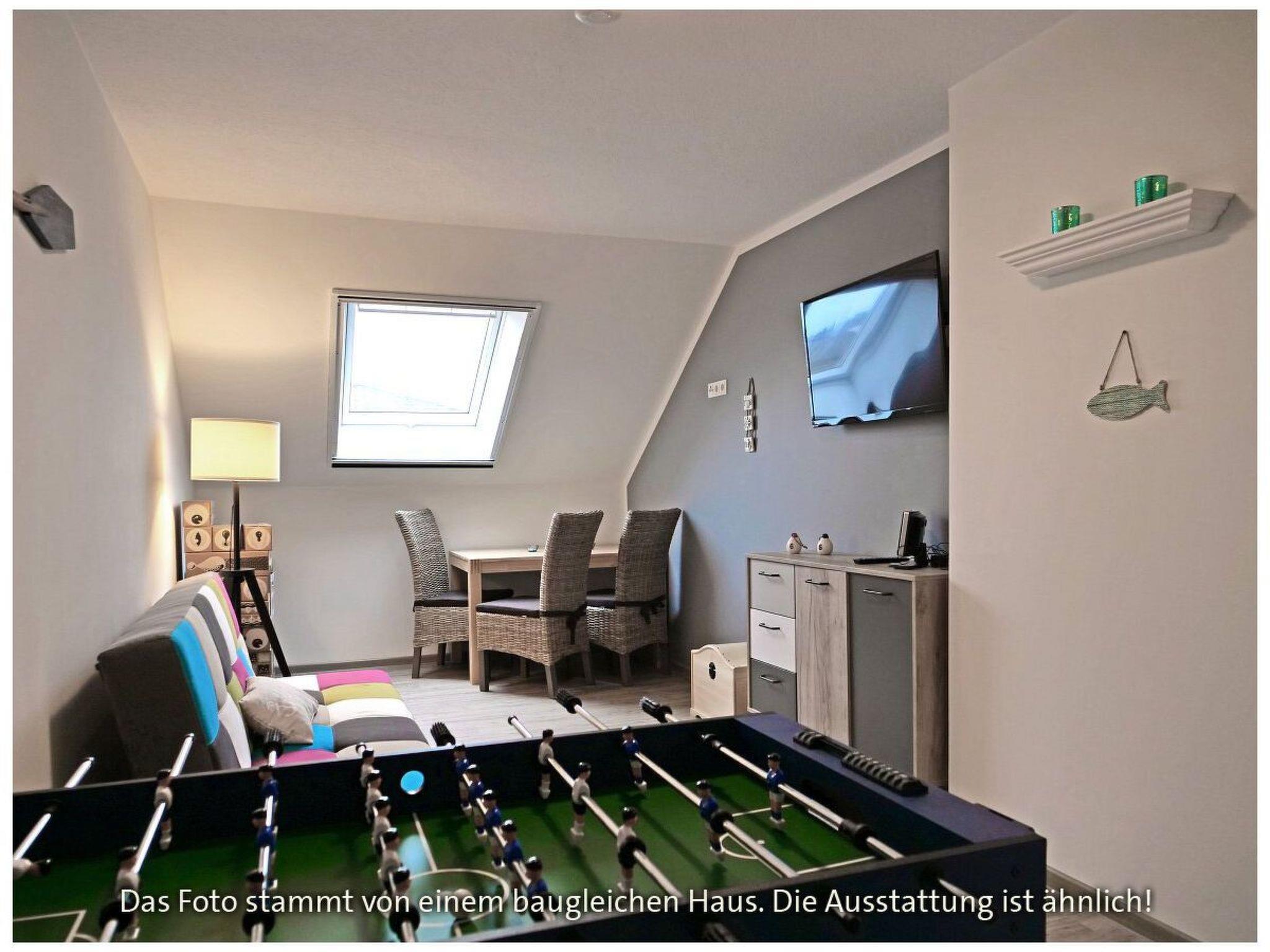 Das Haus "Seebrise" wurde im Landhausstil hochwertig eingerichtet und verfügt über eine exklusive Ausstattung mit großem Wellnessbad mit Sauna und Whirlpool (ca. 17 m²), Terrasse, Balkon im OG, Kaminofen, Fußbodenheizung und Insektenschutz.Die 4 gemütlichen Schlafzimmer, zwei davon im Erdgeschoss, verfügen alle über ein Flachbild TV und viel Stauraum.2 Babybetten für unsere kleinen Gäste sind ebenfalls vorhanden.Eine hochwertige, im Landhausstil eingerichtete Küche mit umfangreicher Ausstattung, offen zum Essbereich, lädt zum Kochen, Genießen und Verweilen ein. Ein Hochstuhl, Kindergeschirr, Pürierstab vervollständigen die Ausstattung der kleinen Gäste.Im Wohnbereich spendet ein Kaminofen wohlige Wärme, welche Sie vom gemütlichen Sofa aus genießen können, von hier aus geht es auch zur großen Terrasse.Im Spielezimmer im OG befindet sich neben einigen Spielen und einer Dartscheibe auch noch ein weiterer kleiner Kühlschrank und ein Schlafsofa.Ebenfalls im OG finden Sie ein tageslichthelles Wellnessbad mit Sauna, Whirlpool, Rainshower Dusche, WC und Doppelwaschtisch sowie hochwertige Badezimmermöbel. Ein zweites Bad mit Tageslicht und ebenfalls Rainshower Dusche befindet sich im EG.Alle Zimmer sind mit elektrischen Rolläden ausgestattet und verfügen über eine Fußbodenheizung. Wohn-, Bad und Schlafzimmerfenster verfügen über Insektenschutzgitter. Der Treppenbereich ist durch ein Treppengitter geschützt.