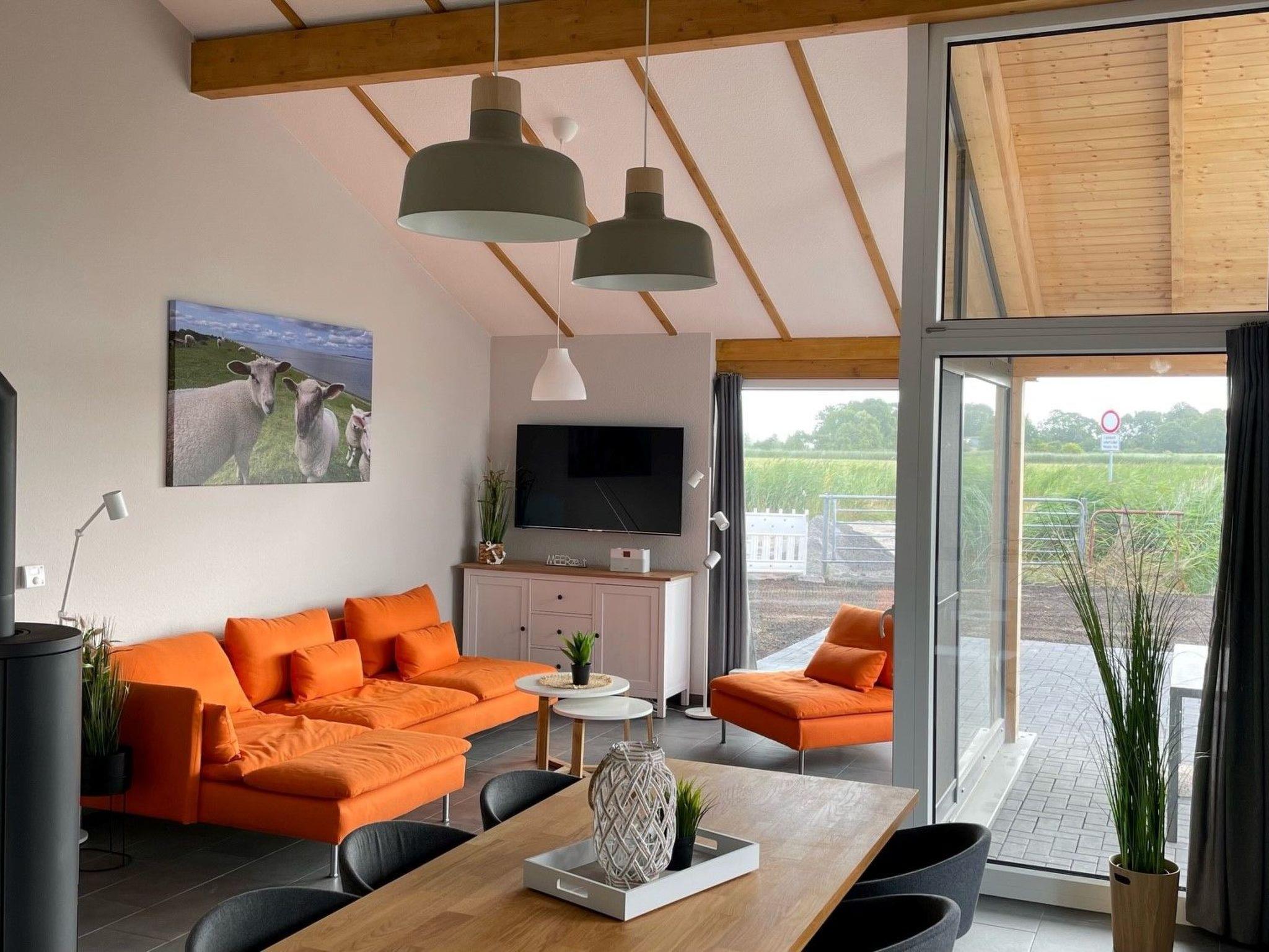 Neubau in Randlage mit Blick ins Landschaftsschutzgebiet, 90 qm Wohnfläche, Erstbezug August 2022, Haustiere erlaubt (max. 2), WLAN, Kaminofen, massiver Abstellraum ca. 10 qm unterm Carport, direkt Nordsee im Feriendorf Eckwarderhörne: G 1