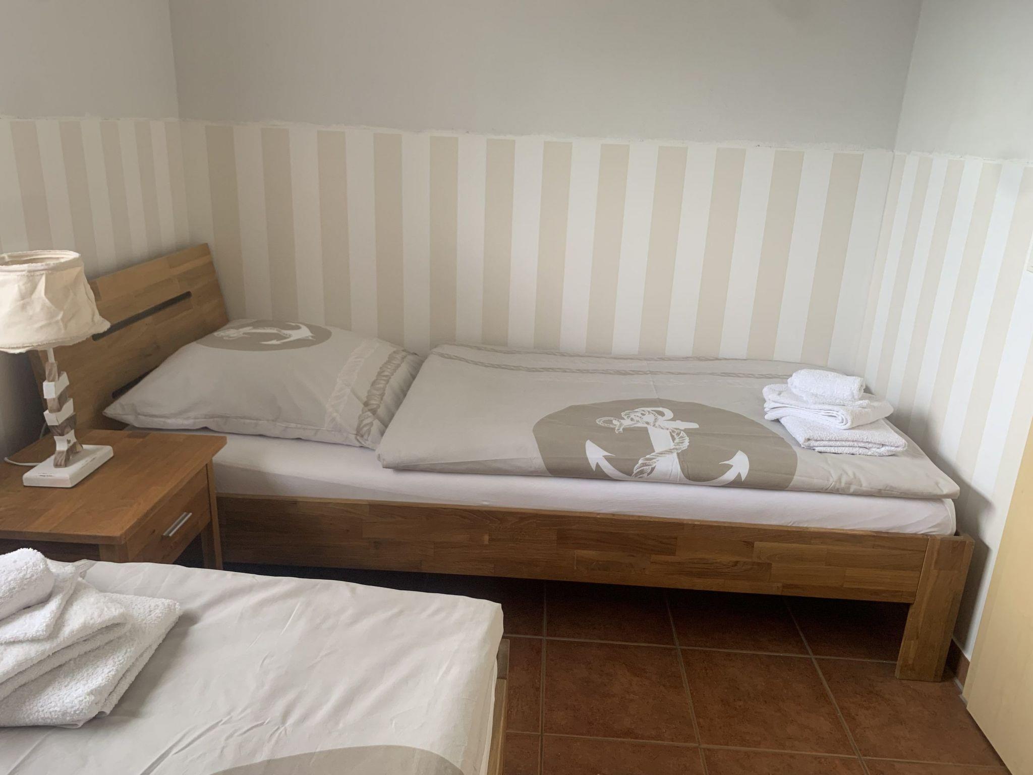 -3 Schlafzimmer mit ebenerdigen Betten: 1 Schlafzimmer mit Doppelbett 1,80x2,00, 2 Schlafzimmer mit je 2x Einzelbett 0,90x2,00 m