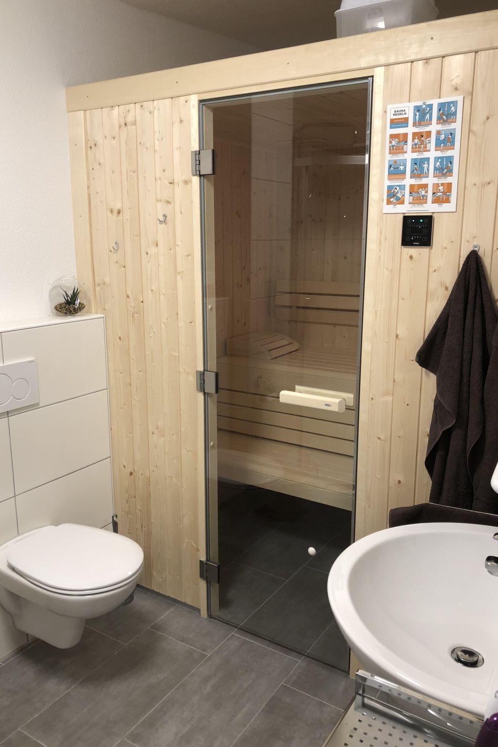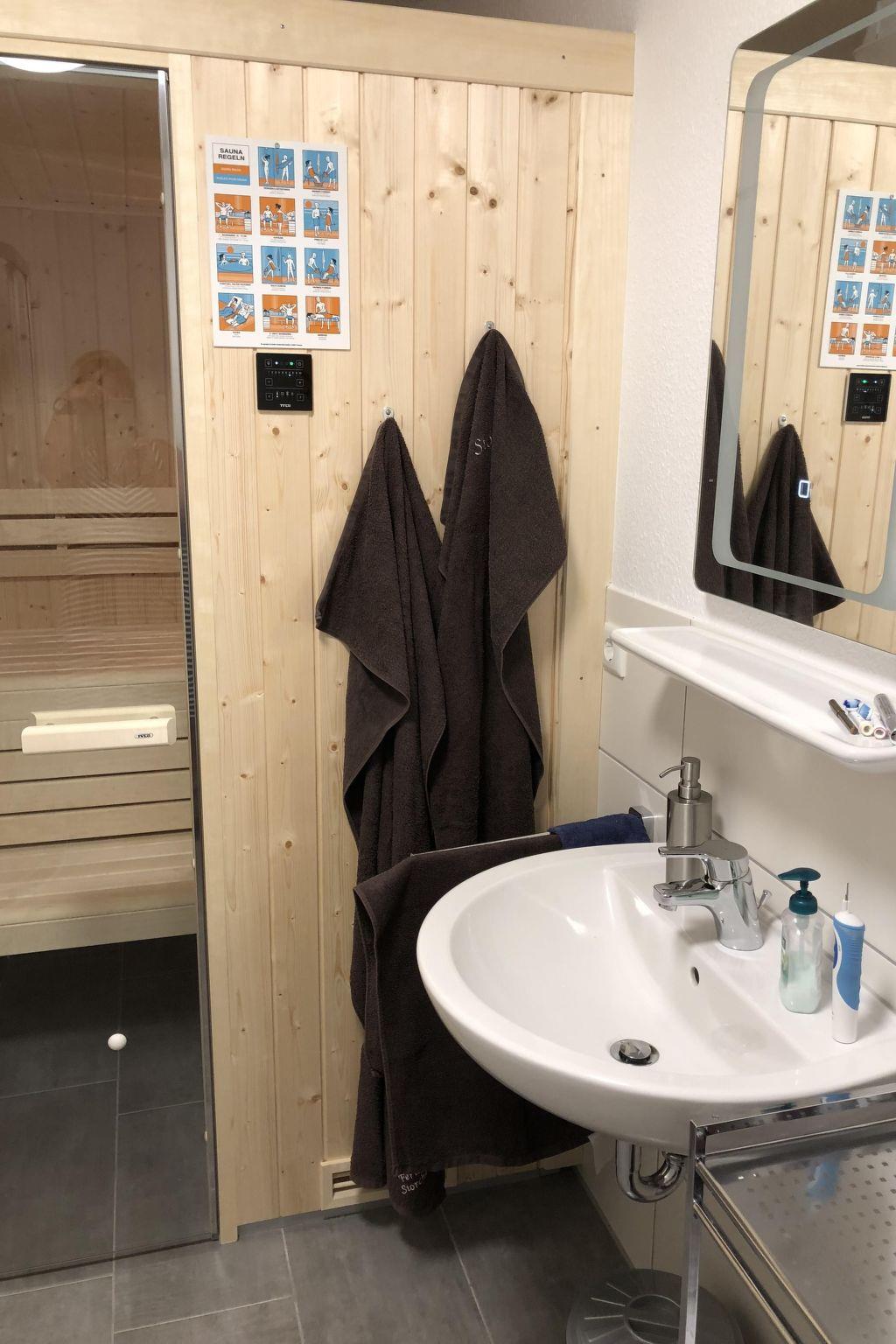 Sauna: funktioniert mit 1€ Münzen (Münzautomat, 1€ = 30 min)