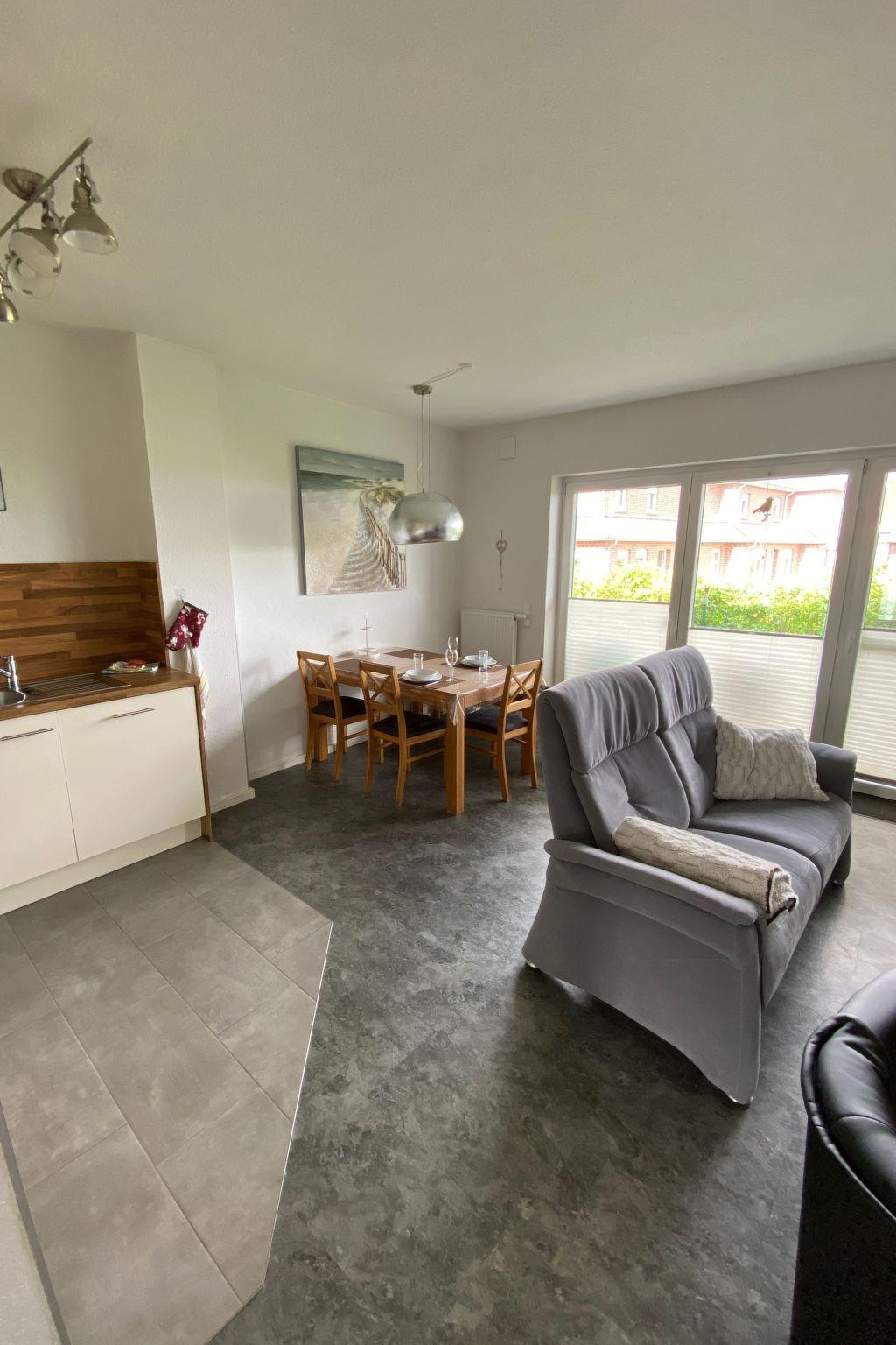 Das Reihenhaus Wattwurm verfügt über 2 Etagen. In der unteren Etage mit einem offenen Wohn/Essbereich mit Sofa und einem Sessel zum relaxen, einem gr. Flachbildschirm, einem Kaminofen für behagliche Wärme, einer vollausgestatteten Küche (Kaffeemaschine, Wasserkocher, Toaster, Geschirrspüler, Backofen etc), einem Gäste-WC mit Waschmaschine und Trockner, kl. Abstellraum und in der oberen Etage befinden sich ein Schlafzimmer (Boxspringbett 180 x 200) mit wunderbarem Balkon und Blick auf den Deich und einem Kinderzimmer (Boxspringbett 160 x 200), im SZ und Gästezimmer gibt es jeweils einen Flachbildschirm), ein Bad mit eigener Sauna. Genießen Sie nach einem Saunagang die Ruhe und den Ausblick über Felder und Wiesen bis hin zum Deich. Desweiteren gibt es einen Grill (auf Anfrage), Gartenmöbel und teilweise Fliegengitter an den Fenstern und Türen.
