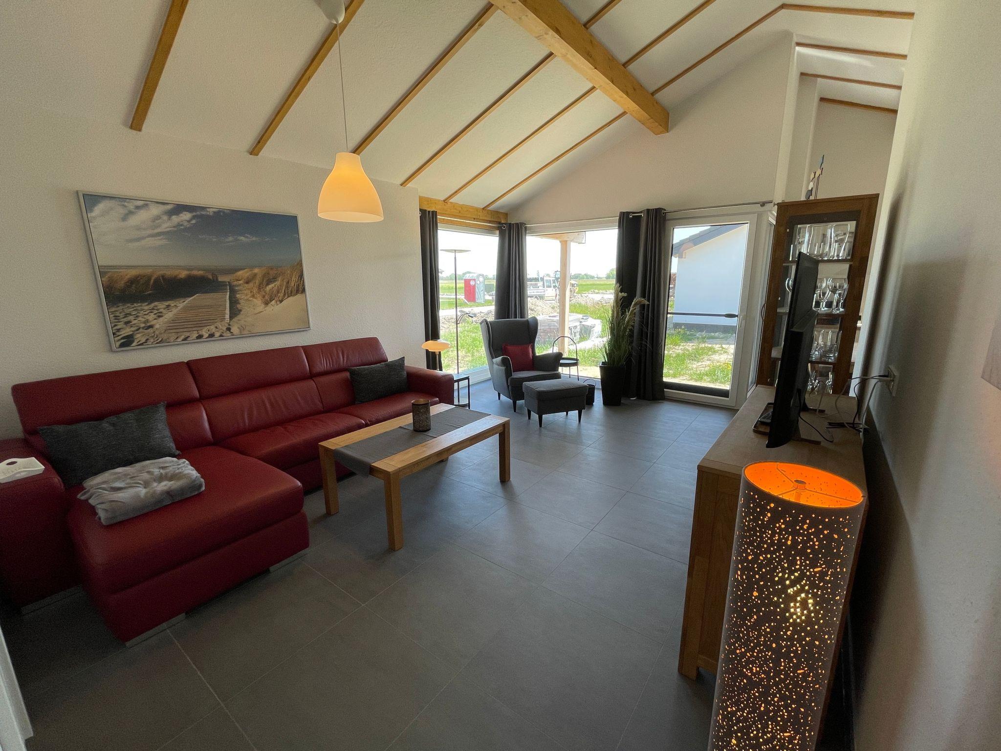 Neubau Haus G 22, Erstbezug August 2022, 66 qm Wohnfläche, keine Haustiere erlaubt, eingezäunt, mechanische Rollläden in den 2 Schlafzimmern + Küche, überall Fliegengitter, alle Räume gefliest, Bad: mit ebenerdiger Dusche, Fußbodenerwärmung, Regenwalddusche, Wand-Handtuchheizkörper, TV im Wohnzimmer und in den 2 SchlafzimmernFür 4 Personen mit 2 Schlafzimmern und 1 BadEigenes 429 qm großes Grundstück• 2 Schlafzimmer (1x Doppelbett 1,80m x 2,00m, 1x 2 Einzelbetten 0,90 x 2,00m)• 1 großzügig geschnittenes Wohnzimmer mit großen bodentiefen Fensterflächen• komplett eingerichtete Einbauküche mit Geschirrspüler und Mikrowelle• 1 Abstellraum / 1 Flur• überdachte Sonnenterrasse mit Gartenmöbeln, Strandkorb und Gartengrill, Gartenhaus• Außenwasserhahn• Carport + 1 Parkplatzferiendorf-nordsee.Das Haus liegt im Feriendorf Eckwarderhörne in unmittelbarer Nähe zum Deich, zum Fähranleger (u.a. Personen-/Fahrradfähre nach Wilhelmshaven) und einen zum Feriendorf gehörenden 50.000 qm gr. Binnensee (mit einer ca. 500 qm gr. Sandliegewiese direkt am Binnensee, Schwimmponton und Stegen).Zum Strandbad Eckwarderhörne mit der Strandhalle, Leuchtturm, Fähranleger und Ausgangspunkt für geführte Wattwanderungen sind es etwa 800 m.Im idyllisch und abseits vom Verkehrsgeschehen liegenden Feriendorf gibt es den Deichgasthof "To´n Spieker", Fahrradverleih, Kinderspielplatz und eine 1.000 qm große Spielwiese mit Beachvolleyballfeld, Badmintonfeld, Baskettballkorb, Aussen-Tischtennisplatte, Sandkiste und Schaukeln.