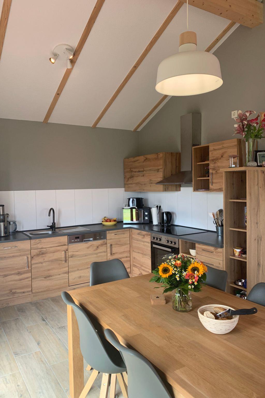 • komplett eingerichtete Einbauküche mit Geschirrspüler, Mikrowelle und Kühl-/Gefrierschrank