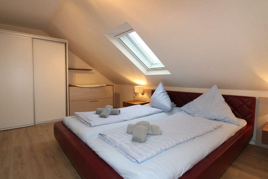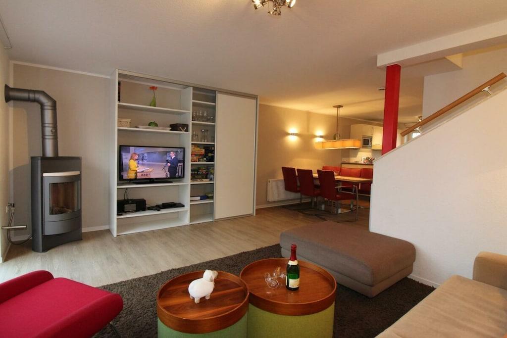 WICHTIGE HINWEISE : Im Mietpreis wird der Aufpreis für Hunde nicht angezeigt. Der Aufpreis beträgt je Hund und Nacht EURO 7 Bitte beachten Sie die Stornierungsbedingungen , diese finden Sie in der Rubrik : Hinweise des Gastgebers. Planen Sie eine An- und/oder Abreise an einem Sonntag oder Feiertag , bitte in der Anfrage angeben. Liebe Feriengäste, unser Ferienhaus bietet Platz für bis zu 6 Personen. Im Erdgeschoss befinden sich der Wohn- und Essbereich, die Küche, die Diele mit Garderobe und ein Dusch-Bad mit WC und Waschtrockner. Ausstattungsmerkmale des Erd- und Obergeschosses siehe unter "Zimmer und Ausstattung". Im Wohnbereich befindet sich ein Gaskaminofen. Für unsere kleinen Gäste sind Kinderbesteck, Kindergeschirr, Hochstuhl, Kinderreisebett, Treppenschutzgitter, Spiele sowie Steckdosensicherungen vorhanden. Im Obergeschoss befinden sich ein Dusch-Bad mit WC und drei Schlafzimmer. In allen Schlafzimmern gibt es einen Flach-TV , Außenrolladen bzw. Verdunkelungsjalousie und Fliegengitter. Auf der nach Süden ausgerichteten Terrasse stehen Ihnen 6 Gartenstühle, 2 Fußhocker, 2 Liegen, Gartentisch und Holzkohlegrill zur Verfügung. Zum Feriendorf gehört ein ca. 40m² großes Saunahaus. Auf dem nahe gelegenen Parkplatz steht 1 Stellplatz zur Verfügung. Wenn Sie einen weiteren Stellplatz benötigen, bitte anfragen.
