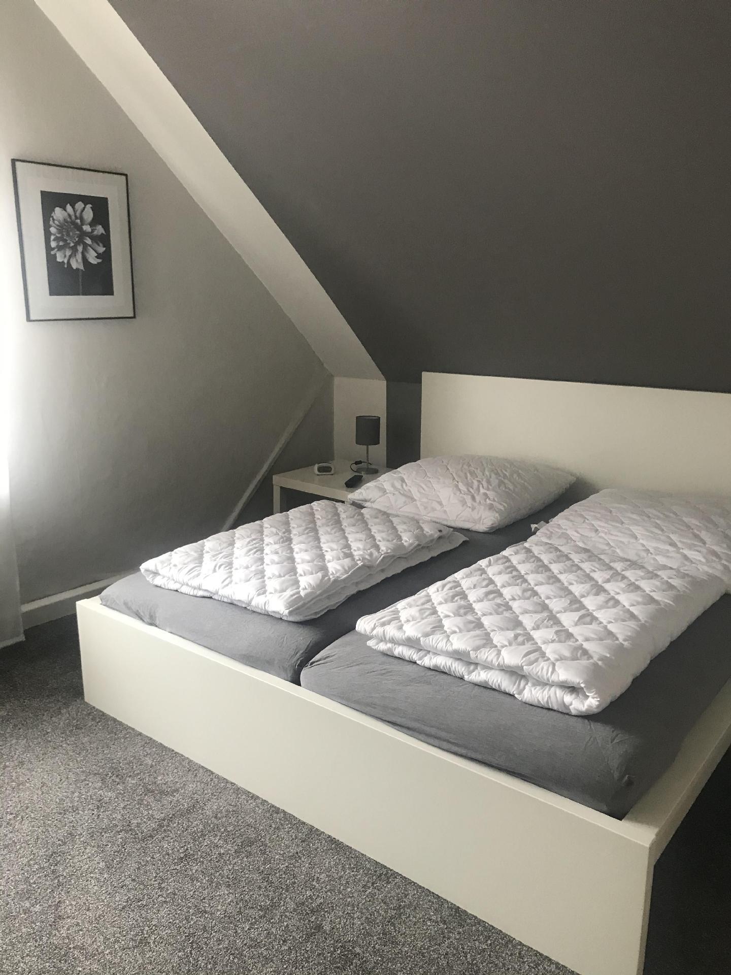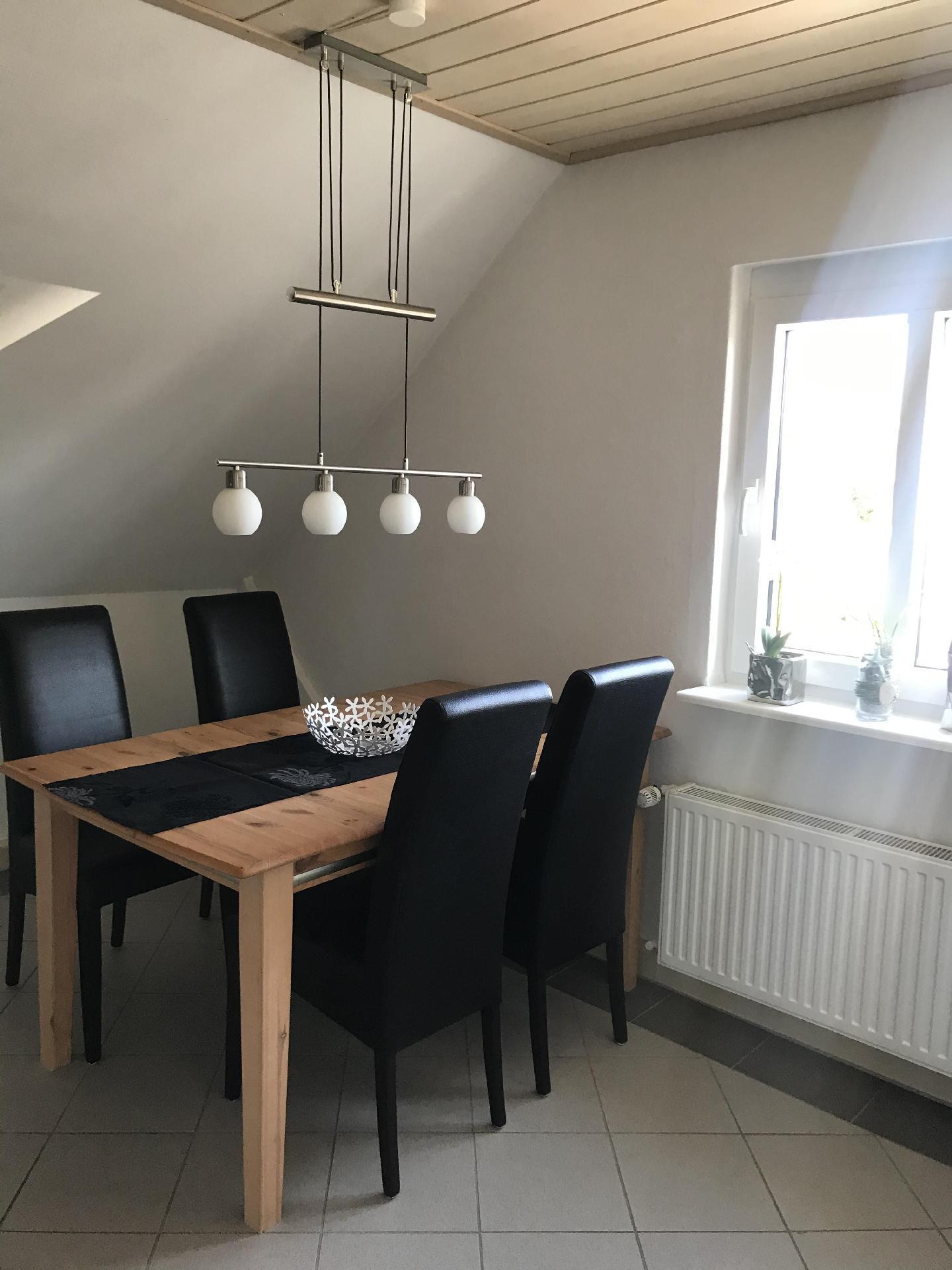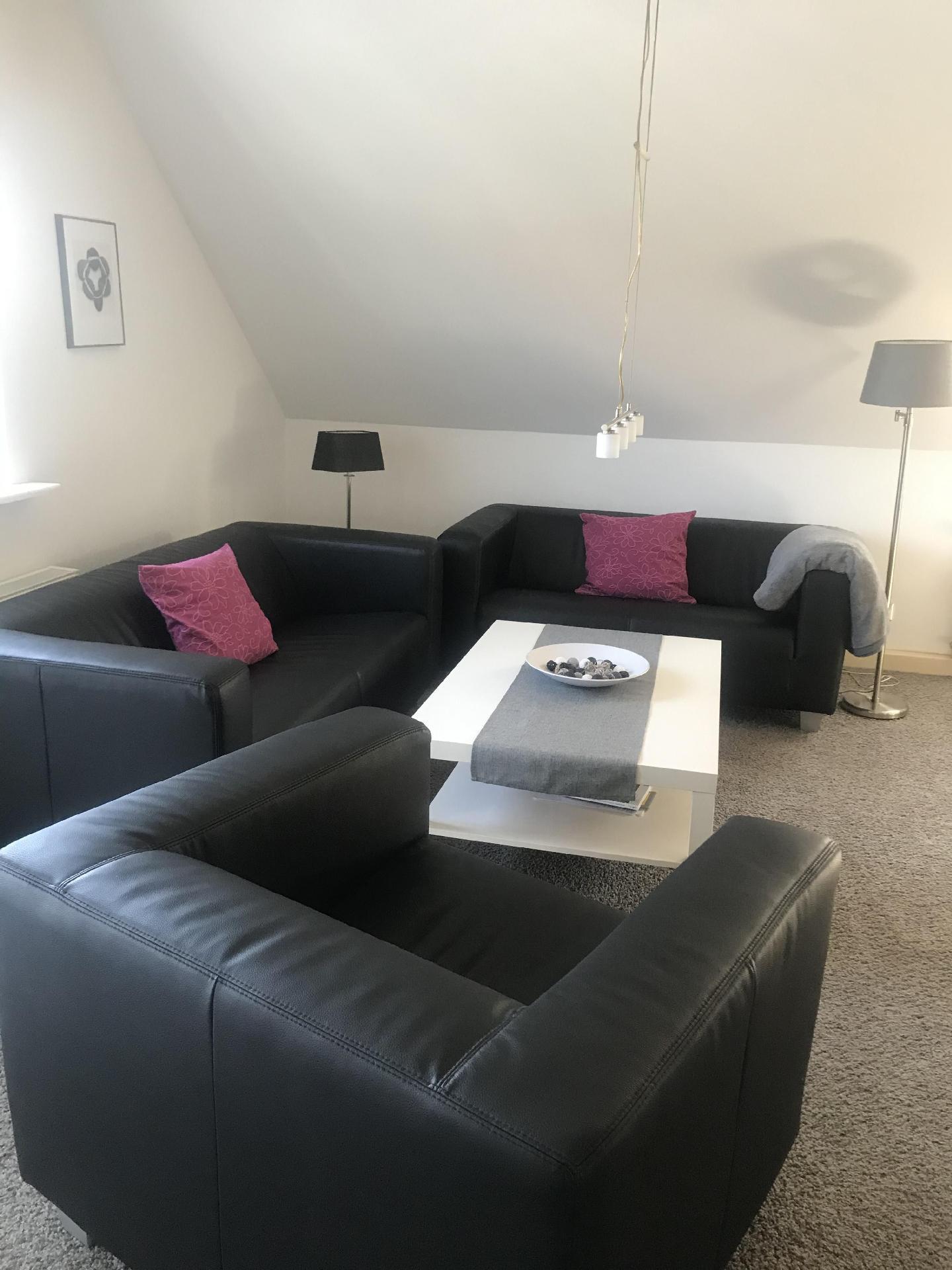 Innen bietet diese 50m² große Ferienwohnung, die sich im oberen Stockwerk eines Einfamilienhauses befindet, eine angenehme Ausstattung, die zum Verweilen einlädt. Neben einem gemütlichen Wohnbereich mit Fernseher steht Ihnen eine hervorragend ausgestattete Küche mit Cerankochfeld, Kaffeemaschine inklusive Pads-Option, Wasserkocher und weiteren Annehmlichkeiten zur Verfügung. Für eine erholsame Nacht sorgt das Schlafzimmer mit einem komfortablen Doppelbett und einem weiteren Fernseher, während das Badezimmer mit einer Dusche und zwei Waschbecken keine Wünsche offenlässt.