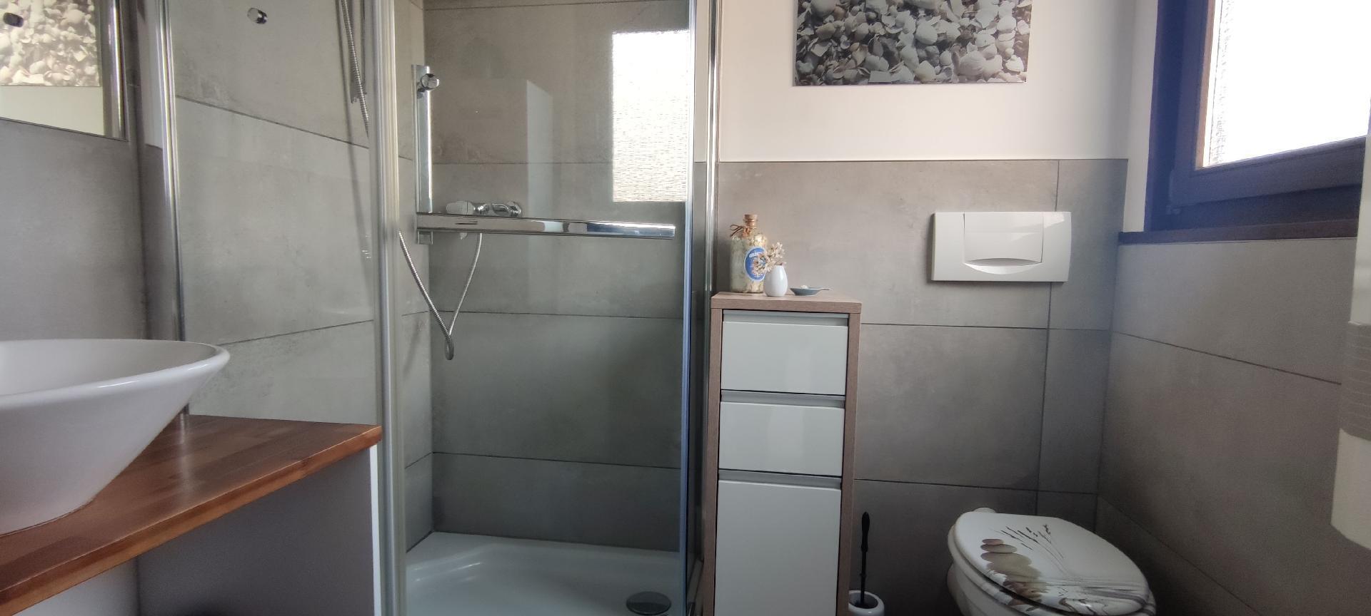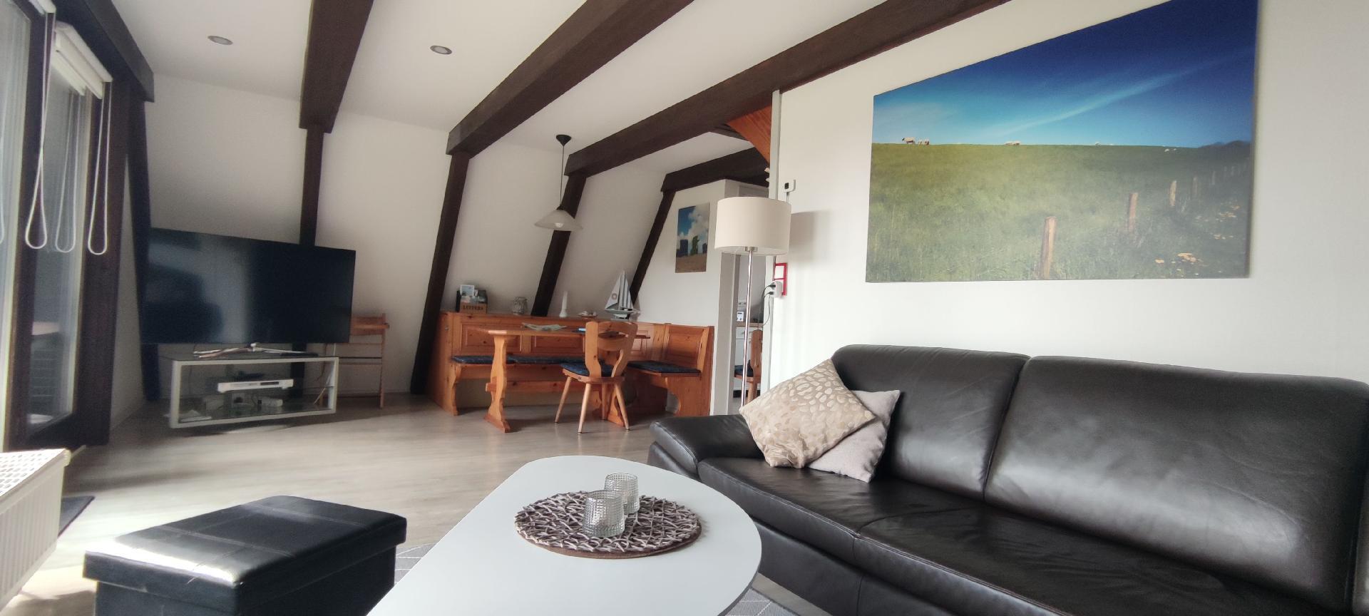 EG: Komplett eingerichtete kleine Einbauküche, Bad mit Dusche, Wohnzimmer mit separater Essecke und gemütlicher Sitzecke. Vom Wohnzimmer aus, in dem der große Fernseher (55 Zoll) und ein DVD-Player auch bei schlechtem Wetter keine Langeweile aufkommen lassen, gelangt man auf die schöne 25 m² große Terrasse.