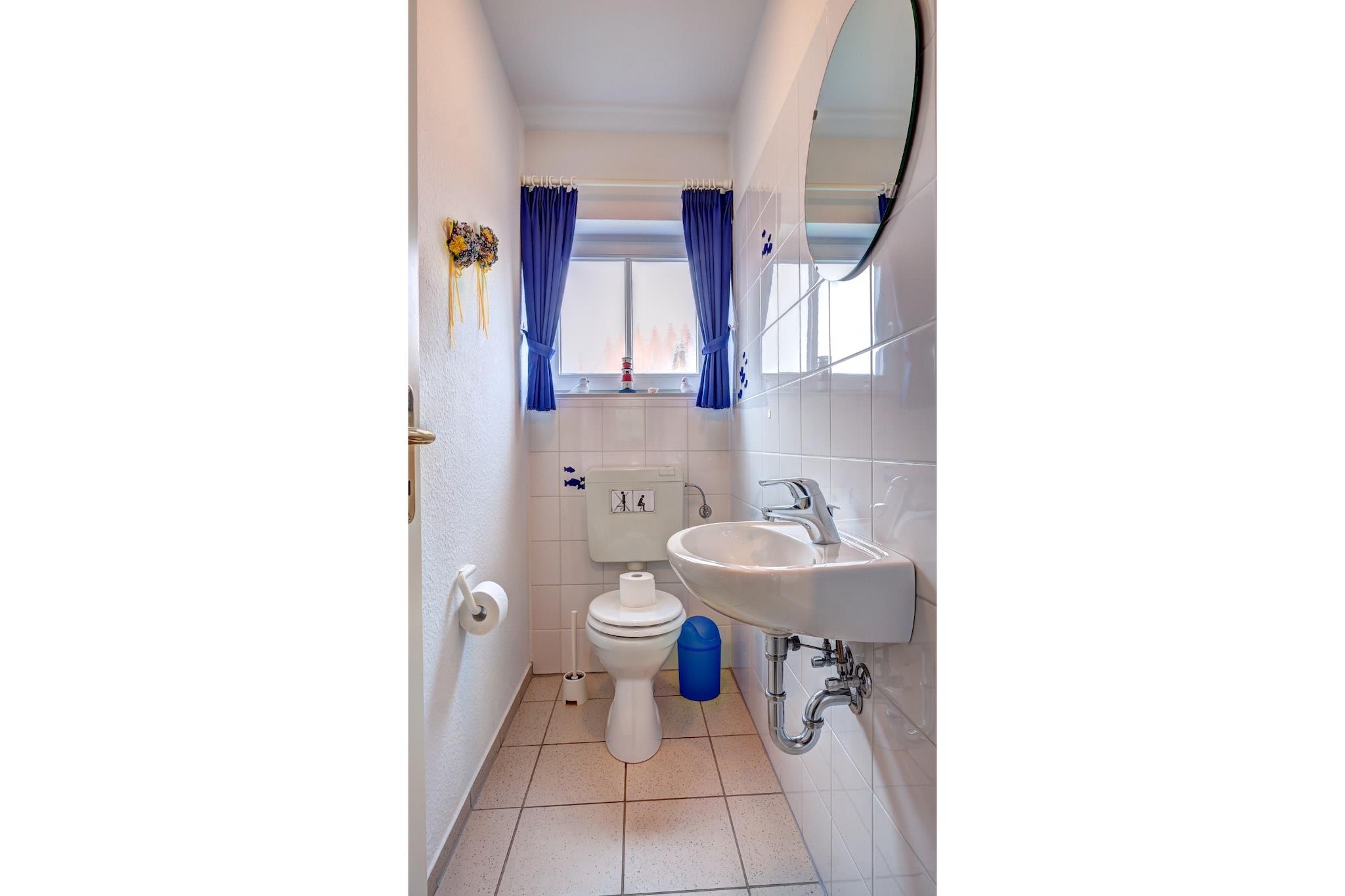 Parterre: (offene Küche(Wasserkocher, Toaster, Kochherd(4 Kochplatten), Kaffeemaschine, Backofen, Spülmaschine, Kühlschrank), Wohn/Esszimmer(TV, Esstisch, Sitzecke), Schlafzimmer(Einzelbett, Einzelbett), Schlafzimmer(Doppelbett), Badezimmer(Badewanne, Dusche, Waschbecken, Toilette, Waschmaschine)) Terrasse, Garten, Gartenmöbel, Parkplatz, Treppenschutzgitter, Wäschepaket gegen Gebühr