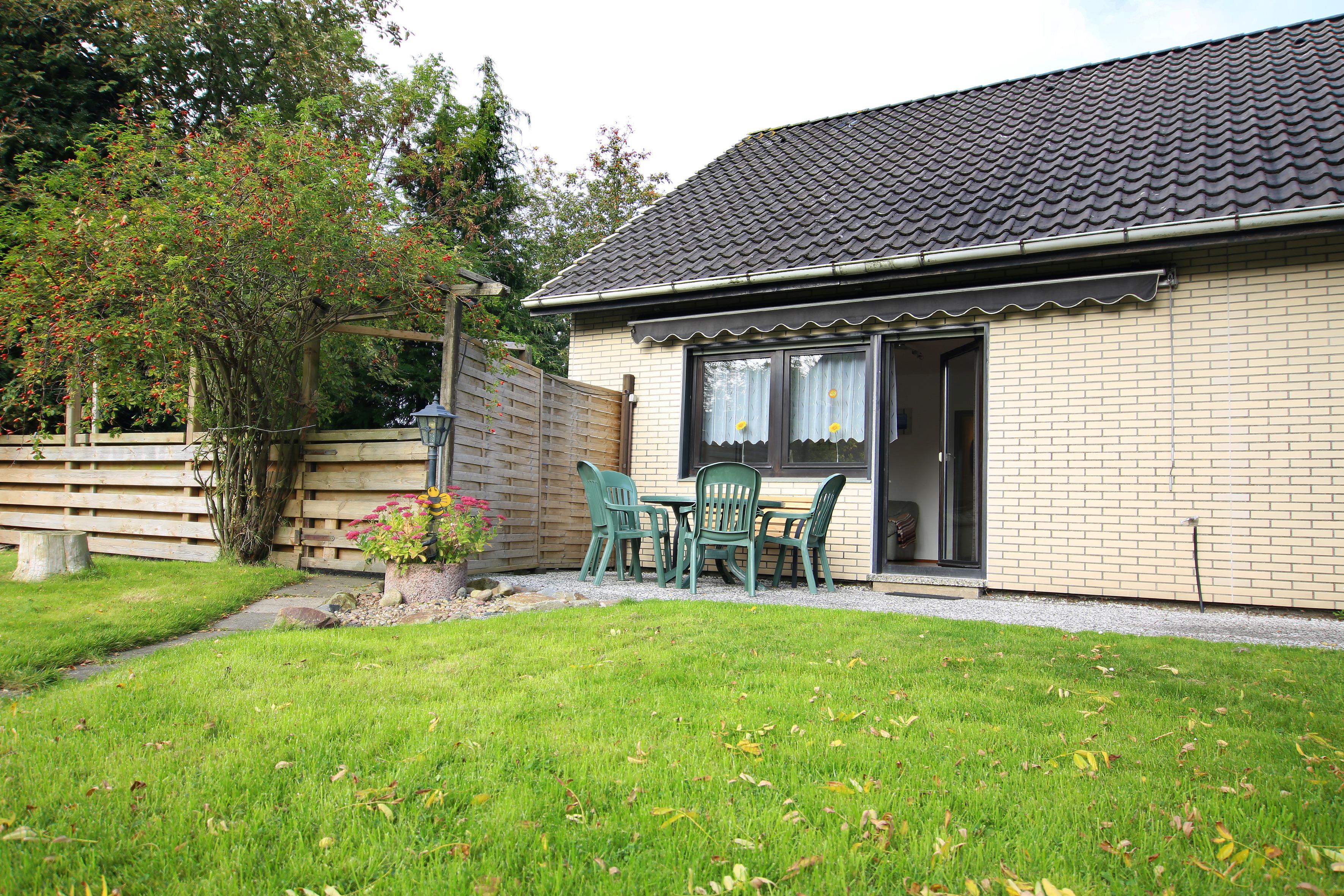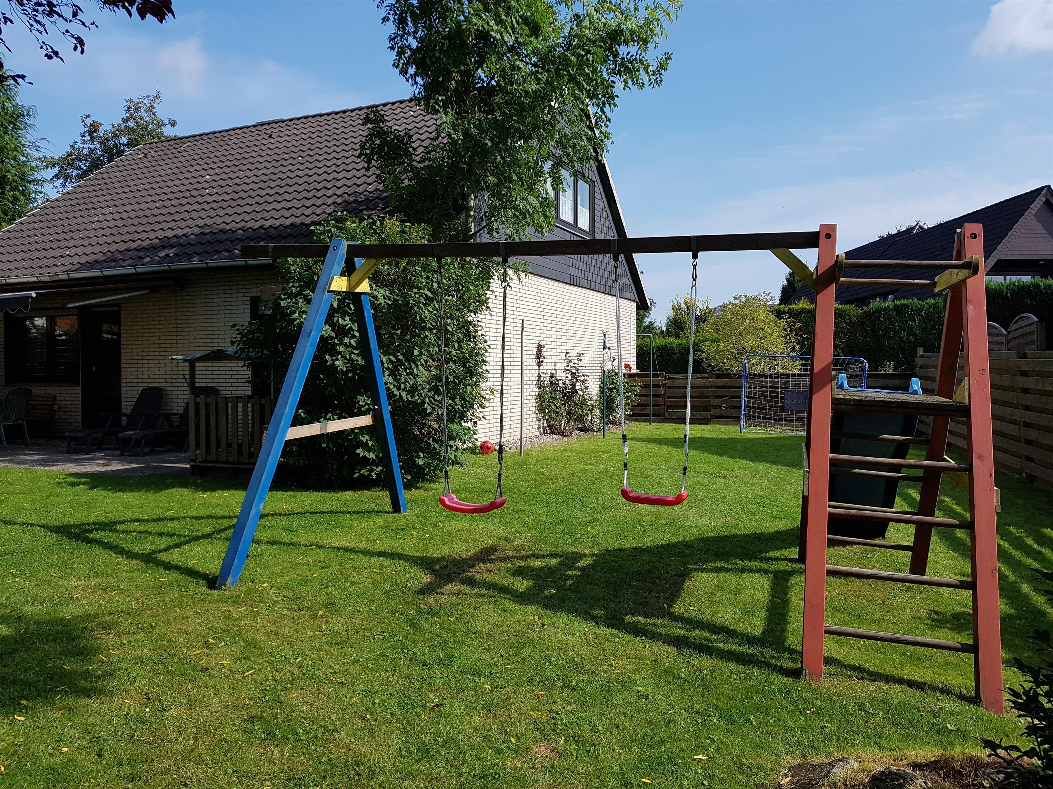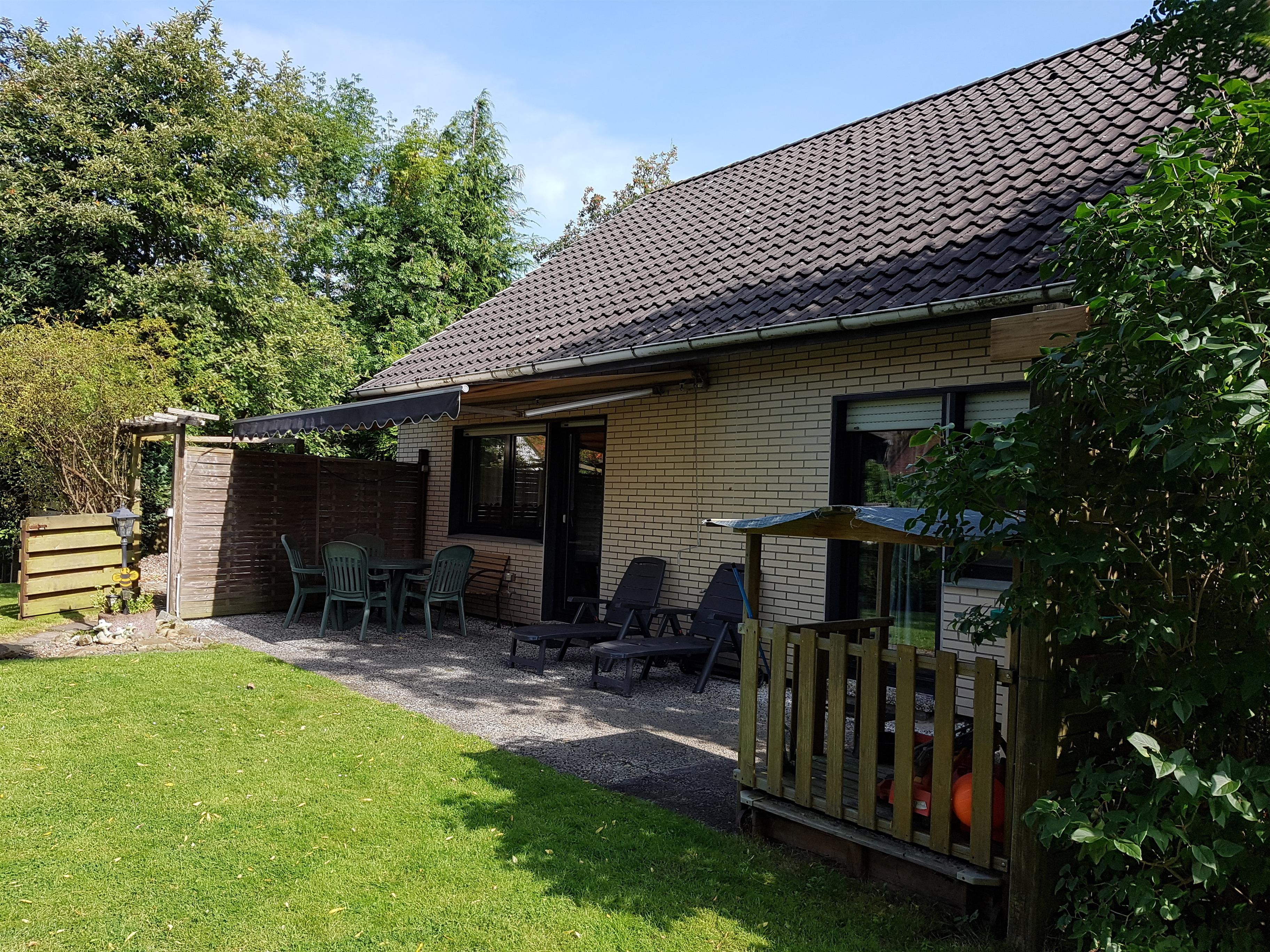 . In dem behaglich eingerichteten Wohnzimmer, selbstverständlich mit neuem Flachbildschirm-TV, Video-Rekorder und Radio, finden Sie eine Sitzgruppe und eine Essecke vor. Die Küche ist mit einer Einbauküche (Backofen, Mikrowelle, Geschirrspüler, etc.) komplett ausgestattet. Hier finden Sie auch eine Waschmaschine vor. Es stehen Ihnen zwei Schlafbereiche zur Verfügung, eines mit Doppelbett und eines mit 2 Einzelbetten. Es gibt ein Badezimmer mit Dusche und WC und ein Gäste-WC extra. Der Garten lädt nicht nur wegen seiner Liegewiese, sondern auch wegen einer Terrasse zum Erholen mit Gartenmöbeln und Liegestühlen ein und auch für die Kinder gibt es einen Sandkasten, eine Schaukel und eine Rutsche. Der Garten ist komplett eingezäunt.