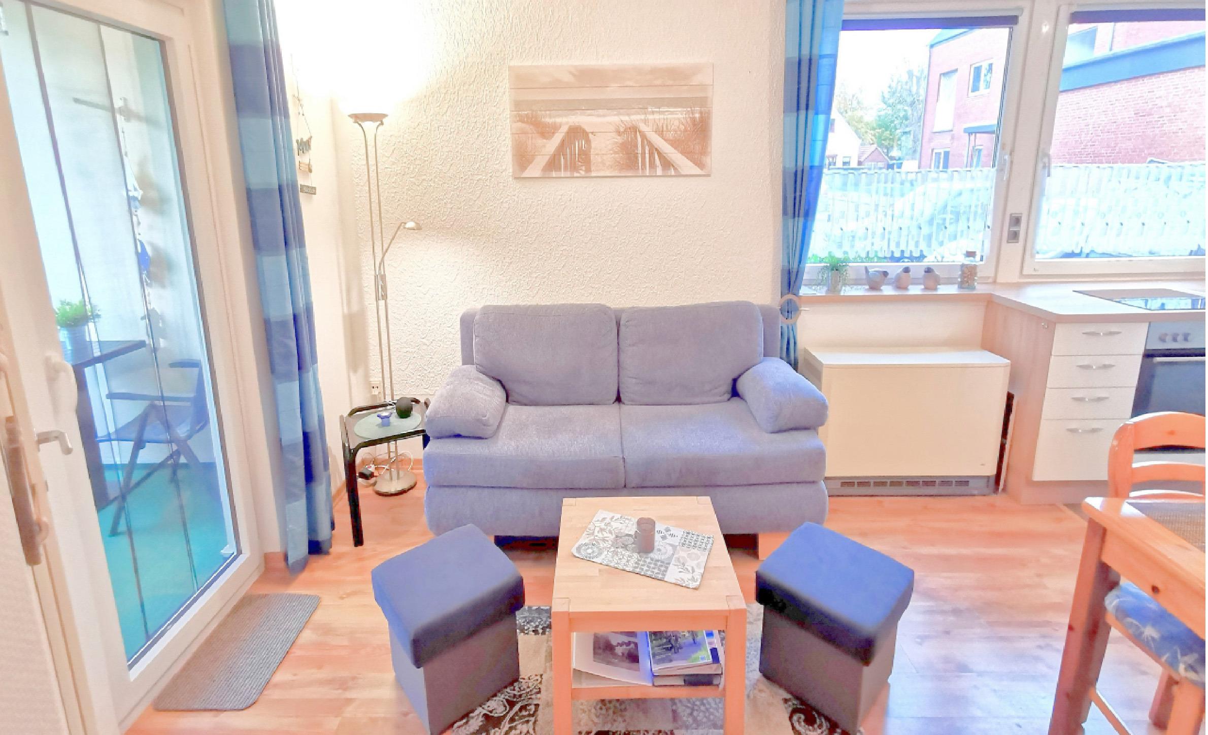 Komfortable Ferienwohnung in Burhave mit Balkon, WLAN und kompletter Küchenausstattung für entspannte Tage an der Nordsee.