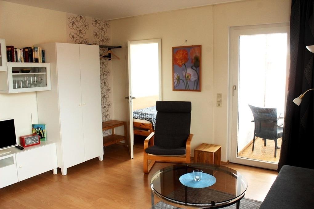 Die Ferienwohnung liegt im 1.Obergeschoss der Appartementanlage und verfügt über ein Wohnzimmer mit Schlafcouch für 1 Person, Kabel-TV, Radio, Essecke u. Kochnische (4-Plattenherd, Wasserkocher, Kaffeemaschine, Toaster), ein Schlafzimmer mit einem Doppelbett (1,40 x 2,00 m), ein Badezimmer mit Dusche/ WC sowie einen Balkon mit Gartenmöbeln. Für mitgebrachte Haustiere werden einmalig eine Gebühr berechnet.