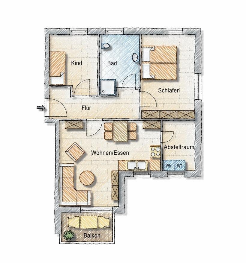 Wohnfläche 74 m²
