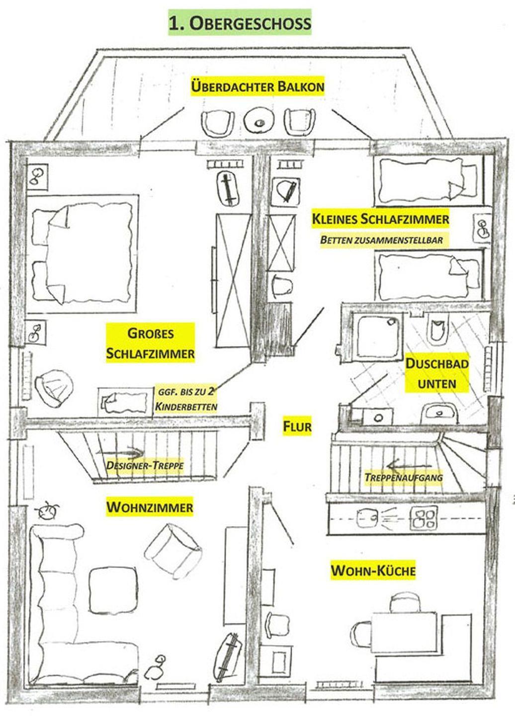 Zu der Ausstattung gibt es auch ein feststehendes Kinderbett (70x140cm) im großen Schlafzimmer und ein weiteres mobiles Kinderreisebett, so dass im Bedarfsfall auch noch 2 Kleinkinder aufgenommen werden können. Eine aufklappbare Wickelkommode, die anderenfalls als Schrank nutzbar ist, kann auch gerne zur Verfügung gestellt werden.