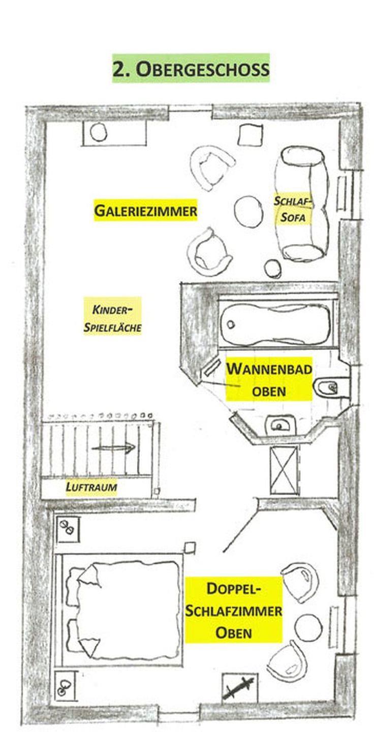 In der obersten Etage liegt das Galeriezimmer mit einer großen Kinderspielfläche sowie eine separate Sitzecke und ein Schlafsofa.