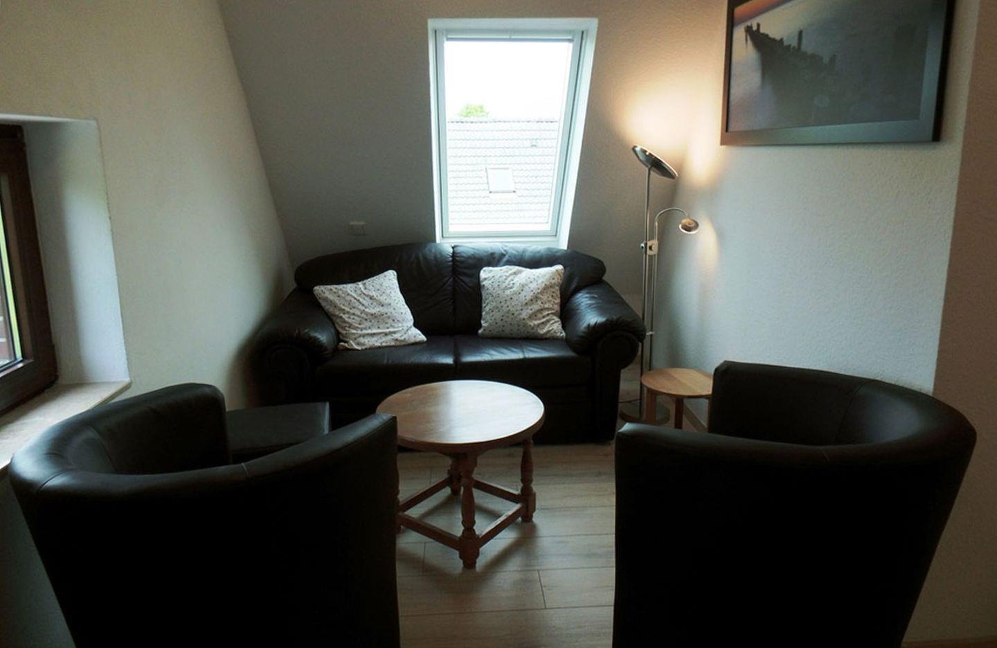 Im Wohnzimmer können Sie auf der gemütlichen Couchgarnitur entspannen. Ein großer Sat-Fernseher ist für die Kurzweil vorhanden.