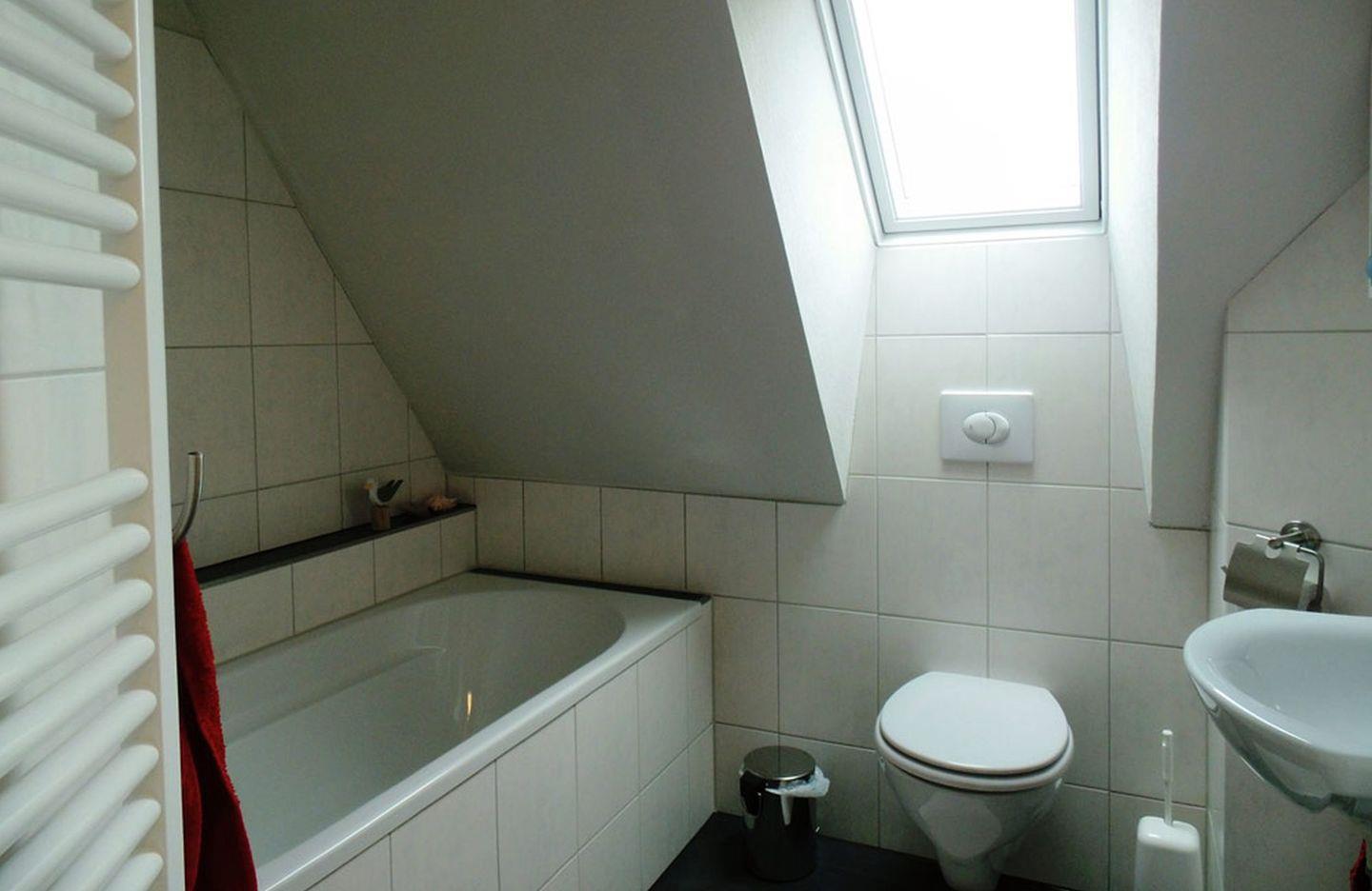 Auf jeder Etage befindet sich jeweils ein neugestaltetes Badezimmer mit Tageslicht, wobei das eine Badezimmer eine Dusche und das andere eine Badewanne hat.