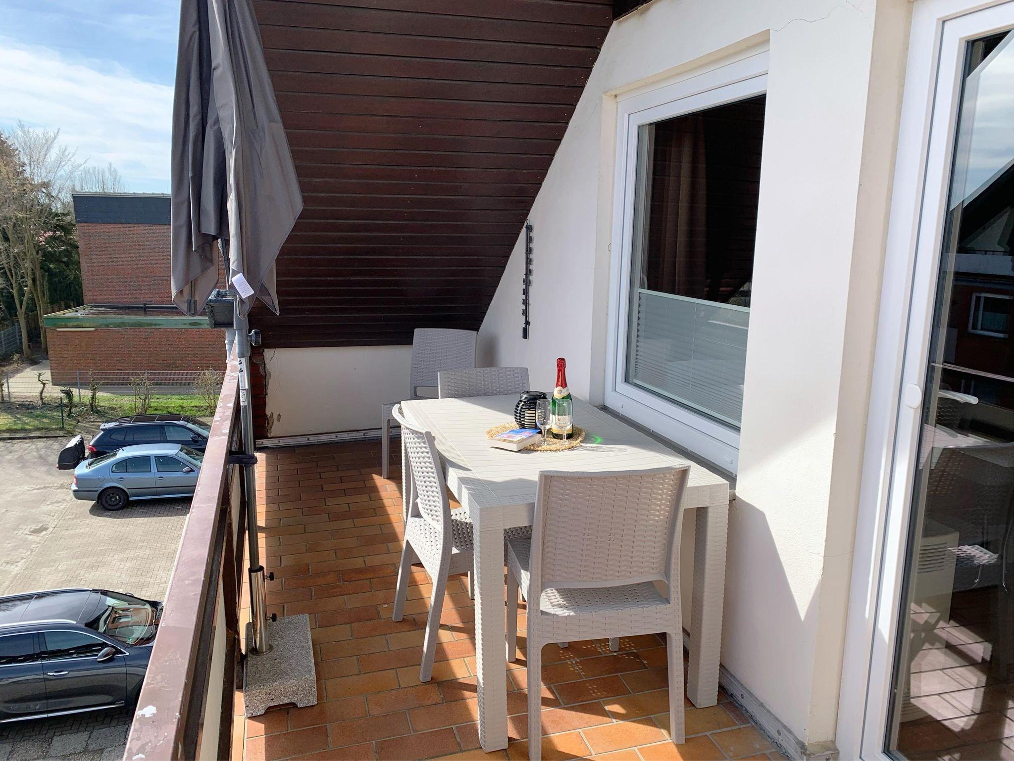 Zentrale Ferienwohnung in Burhave mit Hallenbad, Sauna und Balkon, ideal für Familien und Erholung.