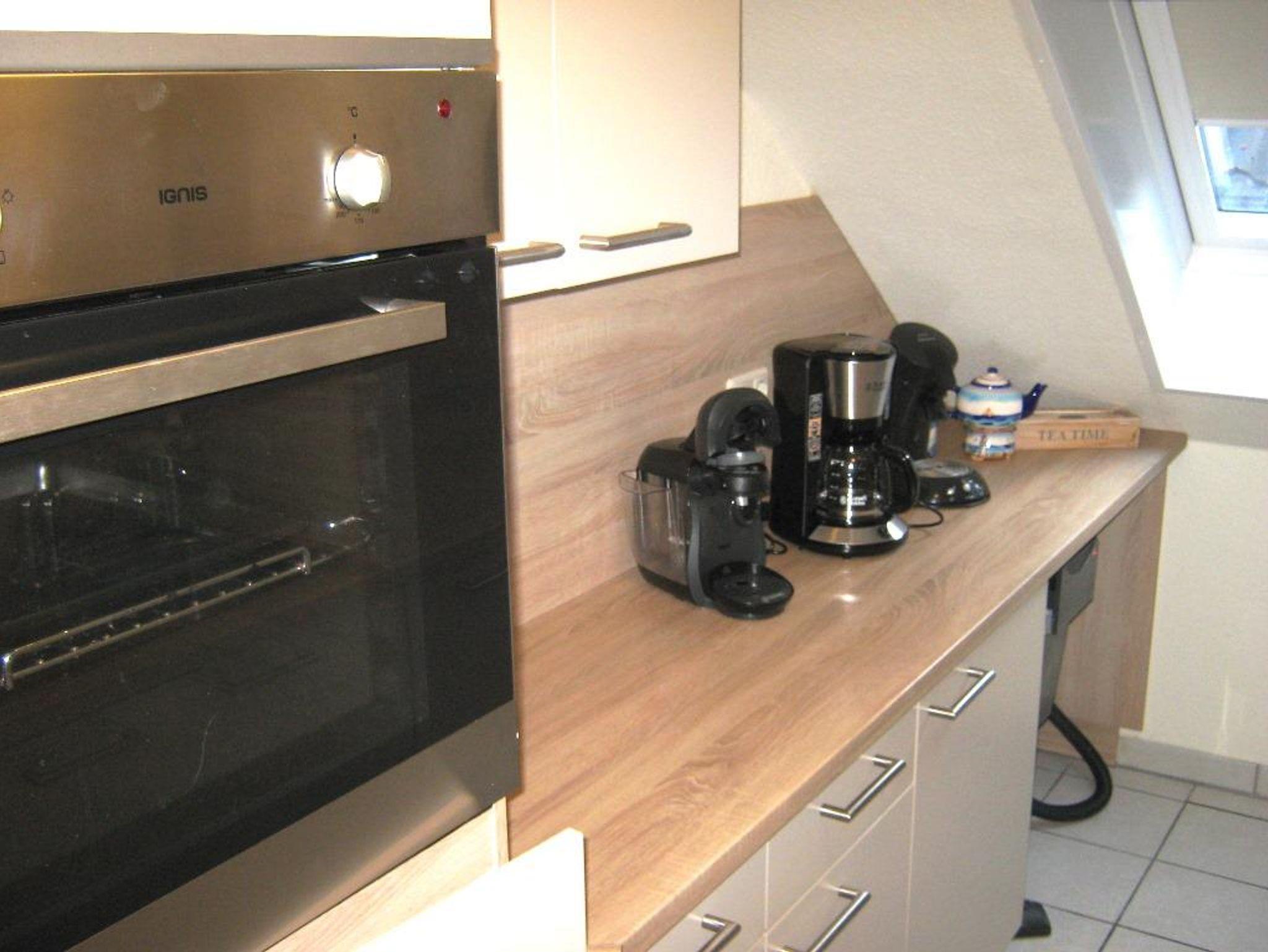 Die 54 qm große Ferienwohnung A26 liegt im Dachgeschoss der Wohnanlage Deichgraf-Burhave und ist für bis zu 5 Personen ausgestattet. Sie verfügt über ein Wohn-/Esszimmer mit gróßer Couch, Fernseher und Esstisch sowie eine separate Küche mit Ceranfeld, Backofen, Kühlschrank mit Eisfach, Mikrowelle, Wasserkocher, Kaffeemaschine, Eierkocher, Toaster und ausreichend Geschirr. Zudem befinden sich in der Wohnung zwei separate Schlafzimmer, eins mit Doppelbett (2x 1,00m x 2,00m) und Kleiderschrank und eins mit einem Einzelbett (0,90m x 2,00m), einem Etagenbett sowie einem Kleiderschrank. Zur Wohnung gehört außerdem ein großes Bad mit Dusche, WC und Waschmaschine sowie ein schöner Balkon. Dieser ist vom Wohn-/Esszimmer aus zugänglich und mit Tisch und Stühlen ausgestattet. Den Gästen steht kostenfreies WLAN zur Verfügung. 1 Haustier ist erlaubt (gg. Gebühr von einmalig 25,00 €).