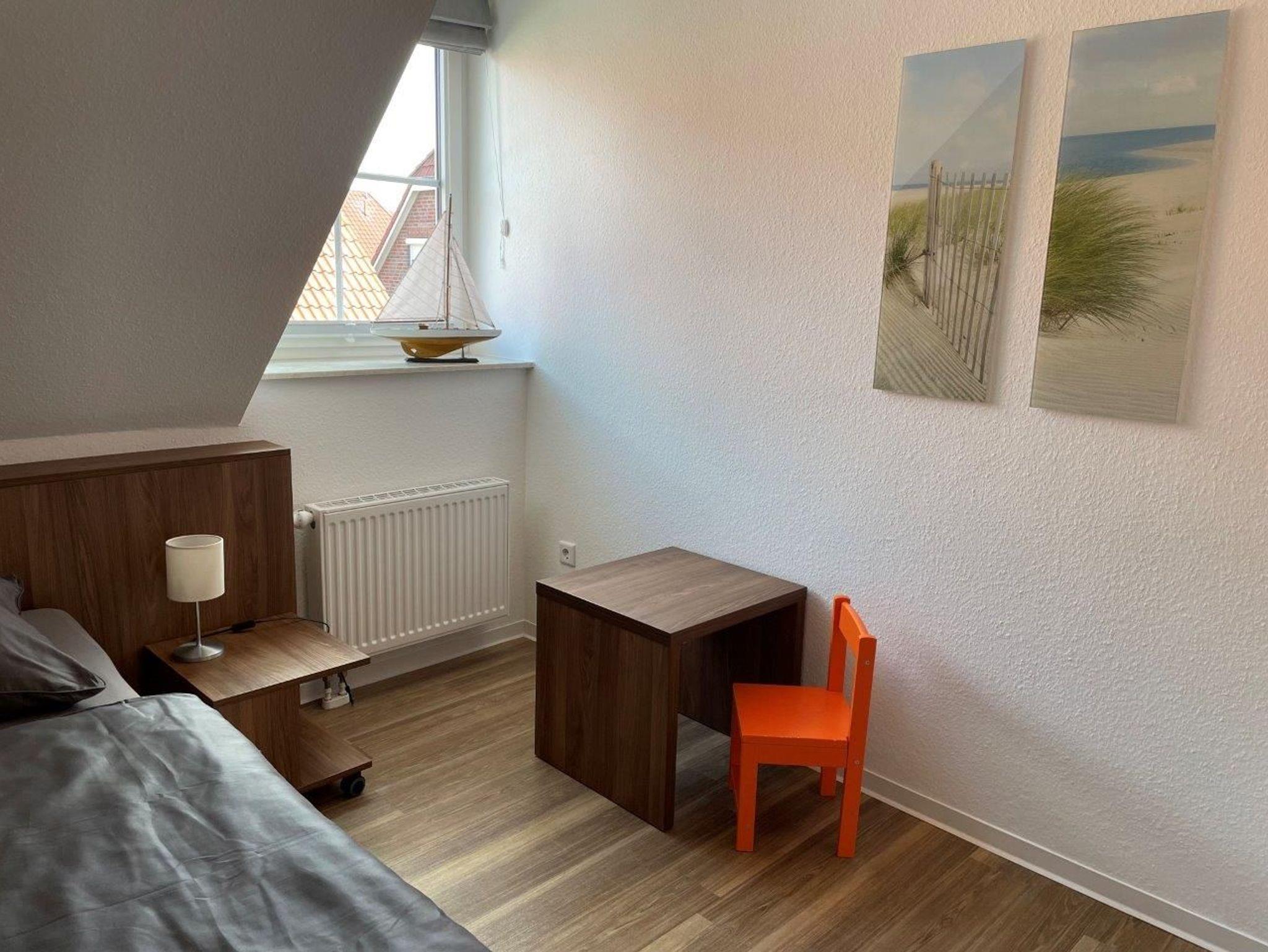 Schlafraum 2 mit Einzelbett und Kleiderschrank.